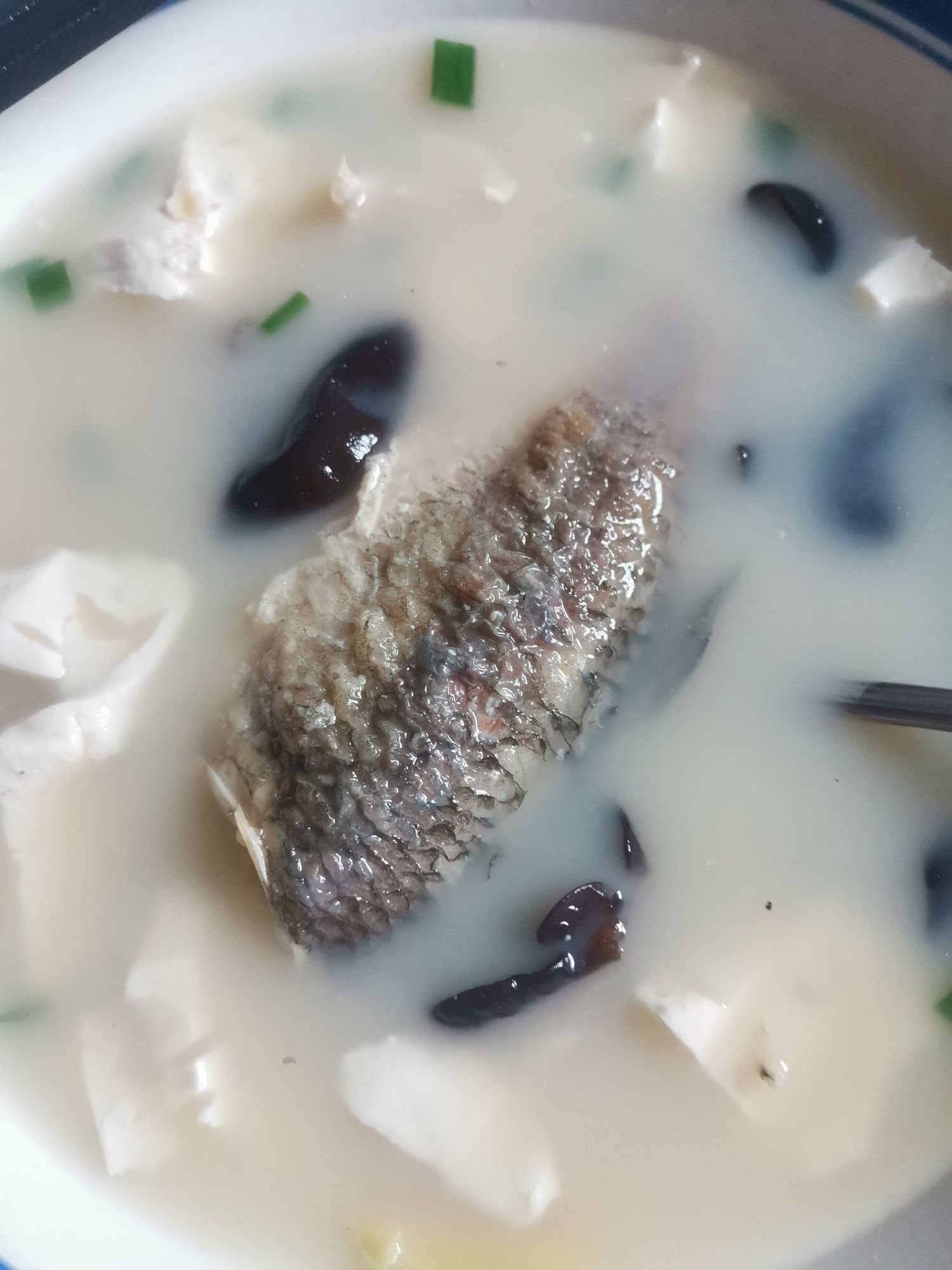 把鲫鱼在锅里煎至金黄,取砂锅倒入适量的水和几片姜,放入嫩豆腐和煎好的鲫鱼炖至奶白色,加盐,味精,白胡椒,撒上葱花调味即可。