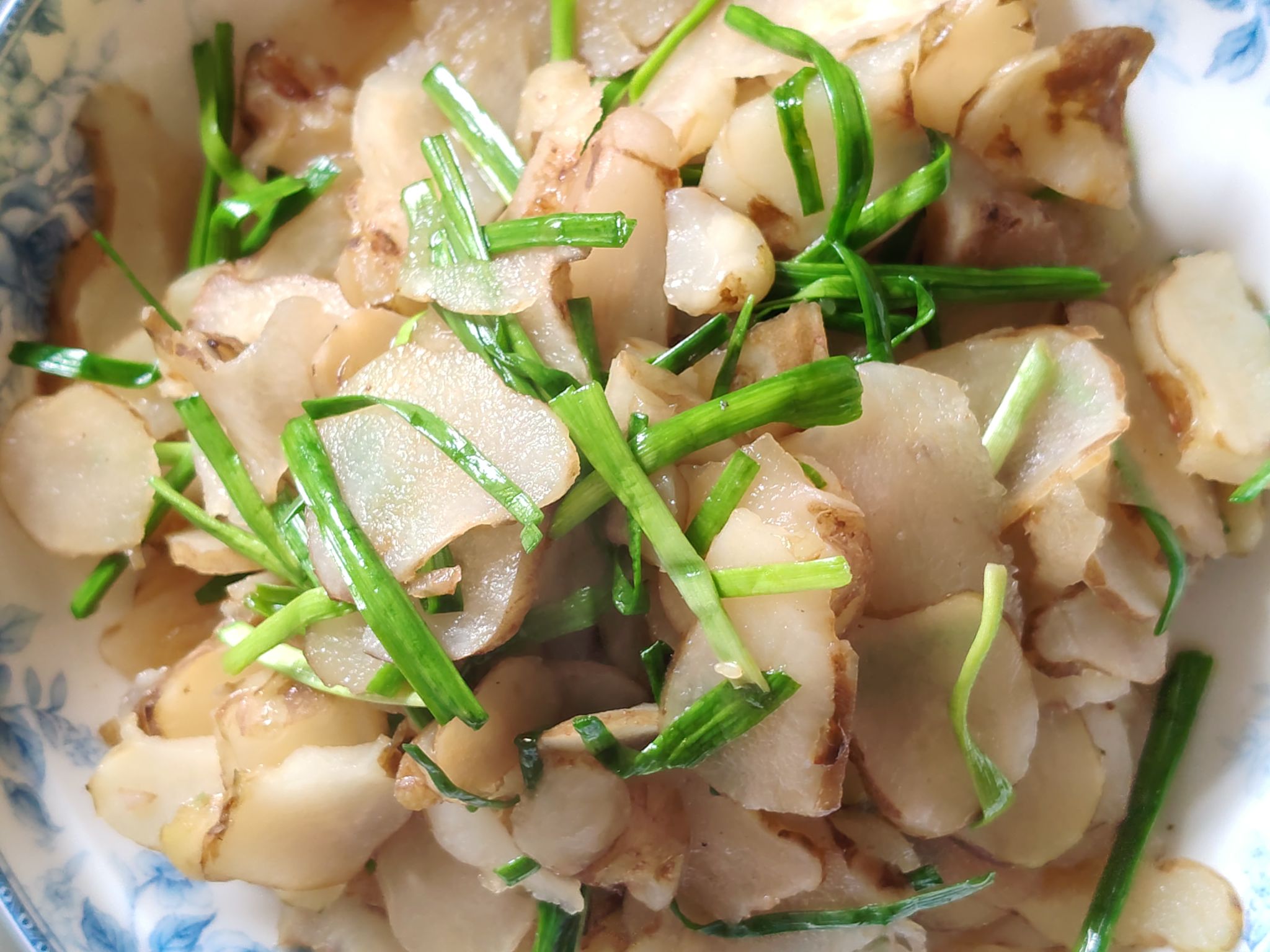 洋姜都是用来腌制着吃的,炒的还没吃过,今天做了一下,配了点蒜苗。吃着脆脆的,还行。