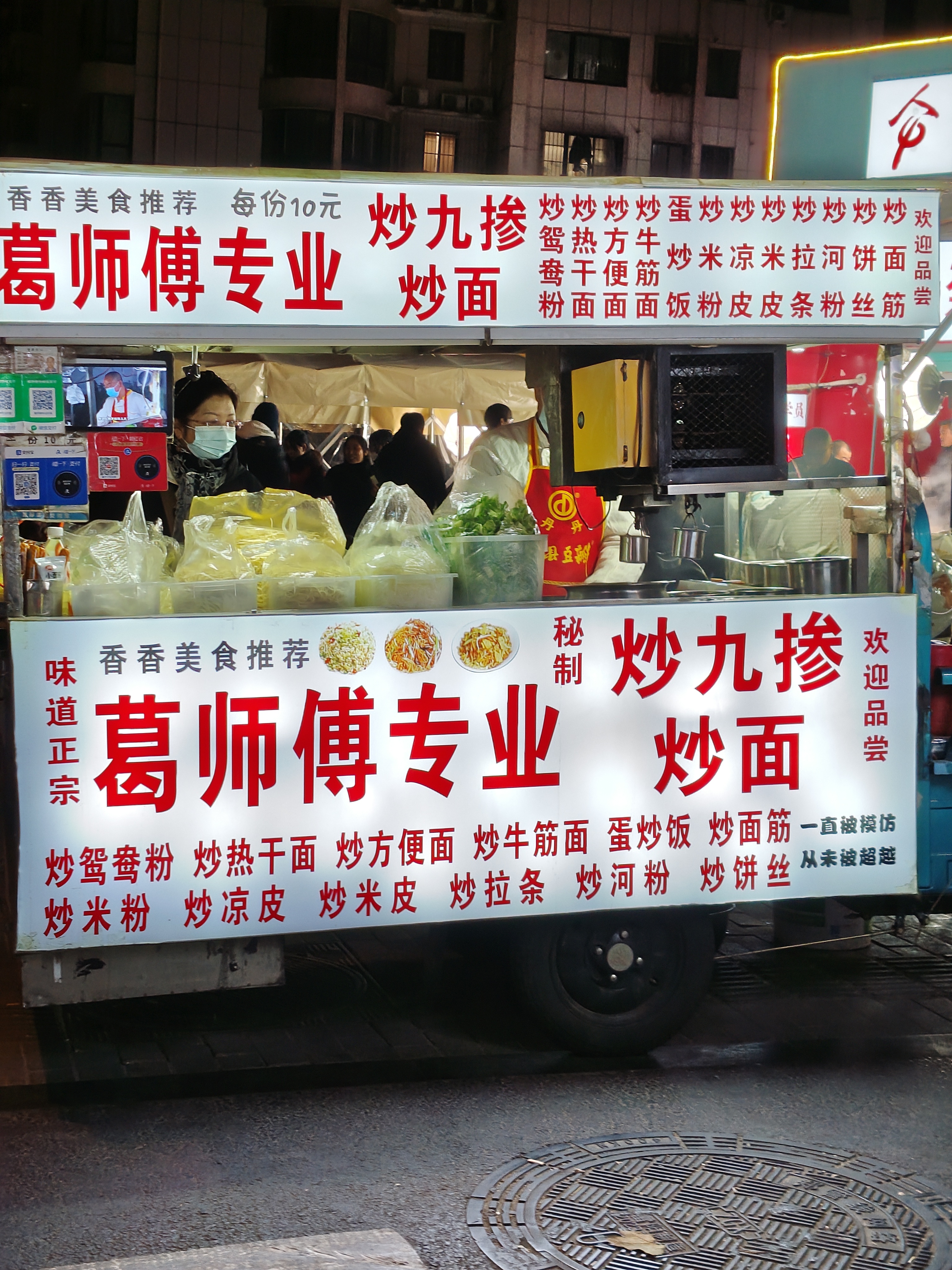 咱郑州有个网红店是 炒八掺,今天晚上遛弯,看见了个小吃摊 炒九掺。这也是蹭流量吧。哈哈…