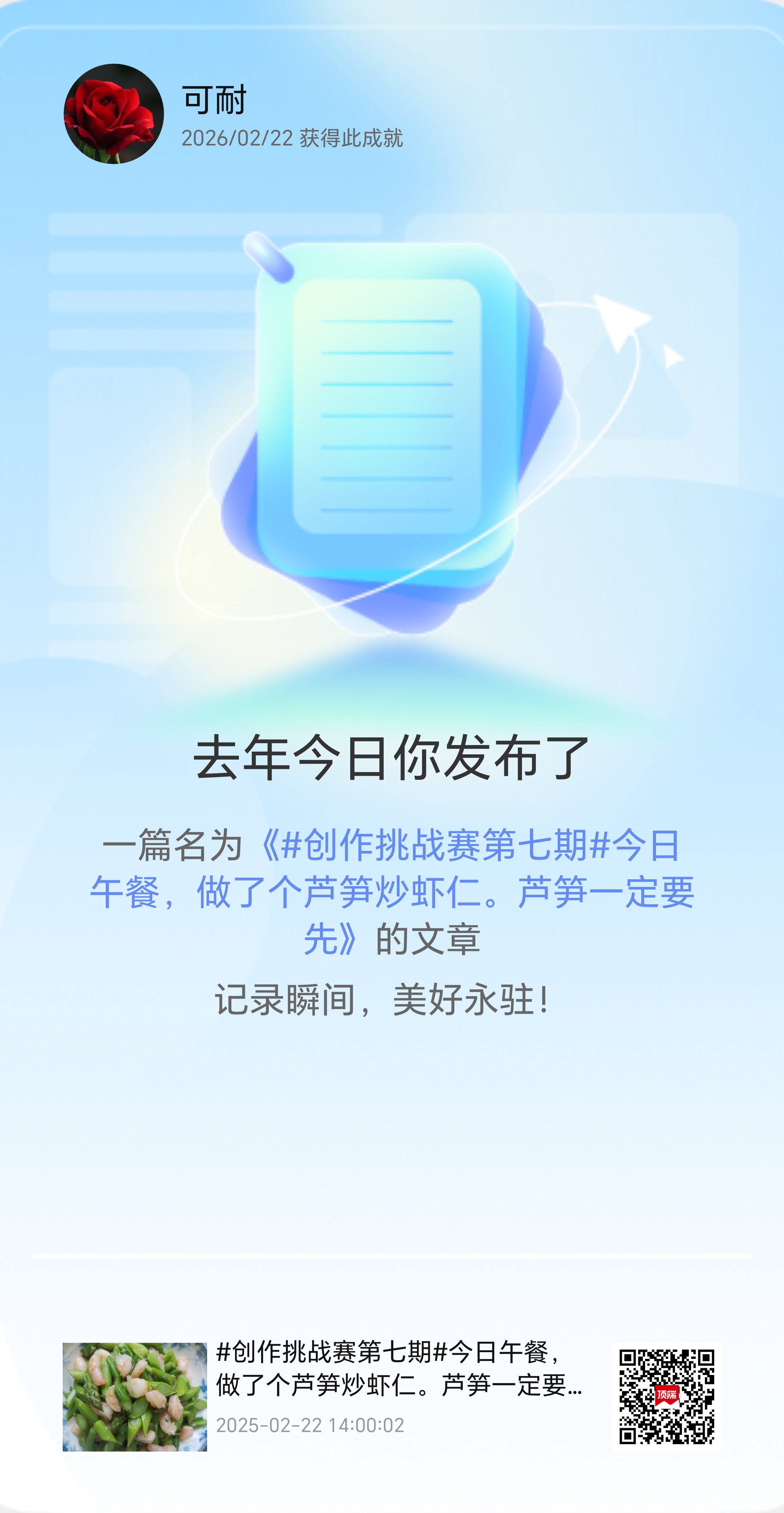 今日午餐,做了个芦笋炒虾仁。芦笋一定要先焯一下水去除草酸。》!