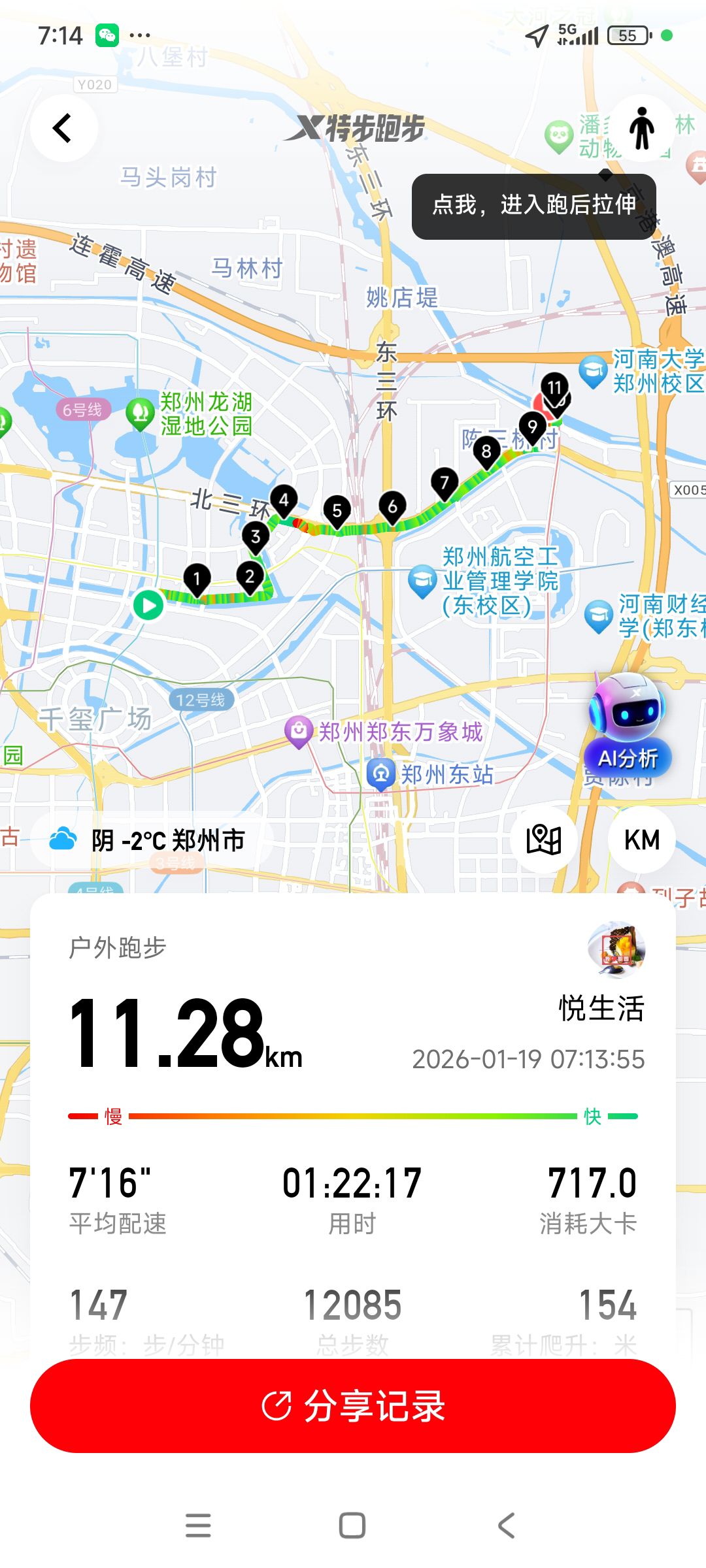 跑步打卡。 今天是2026年1月19日,农历十二月初一,星期一,早上跑步11.28公里。心态平和,与人友善,做个幸福的人,爱生活,悦生活。