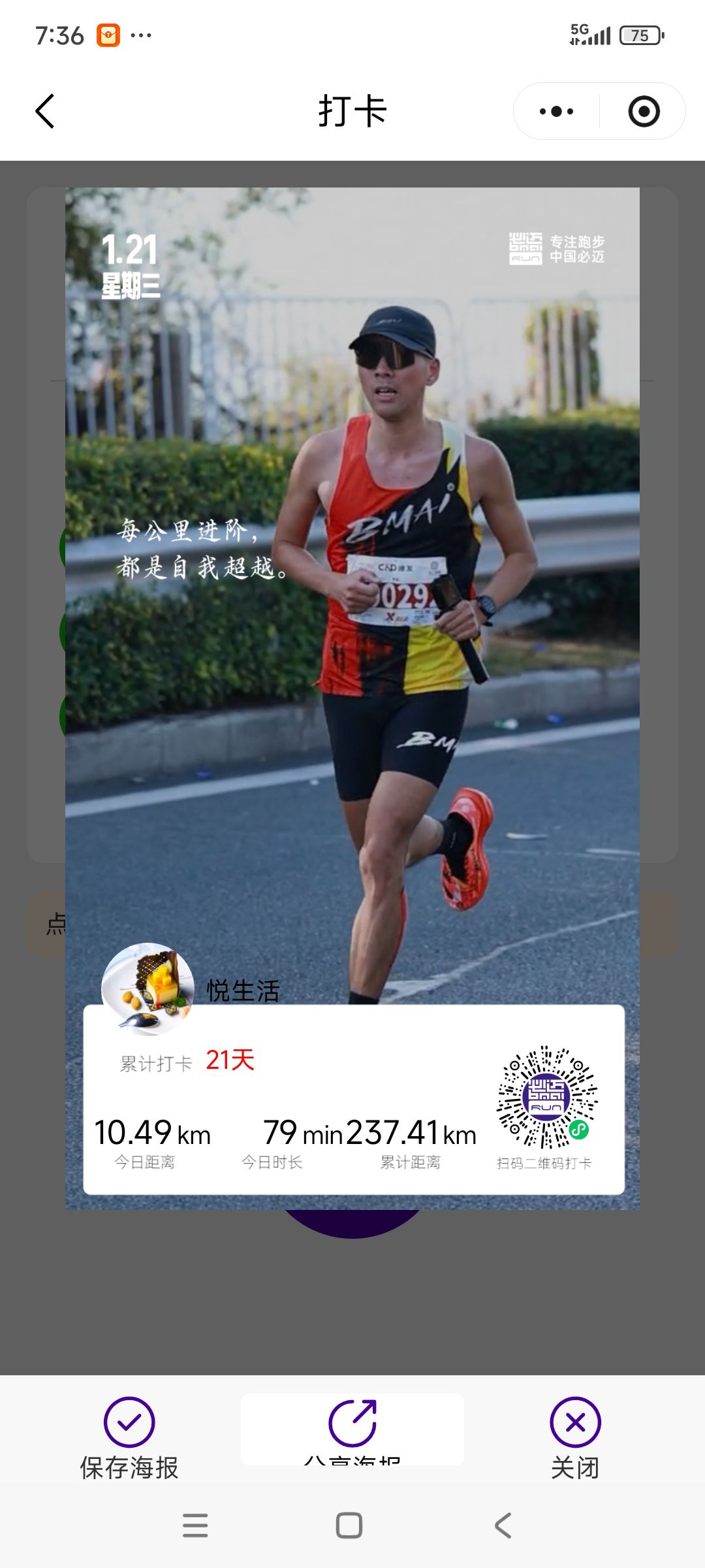 跑步打卡。 今天是2026年1月21日,农历十二月初三,星期三,早上跑步10.49公里。心态平和,与人友善,做个幸福的人,爱生活,悦生活。