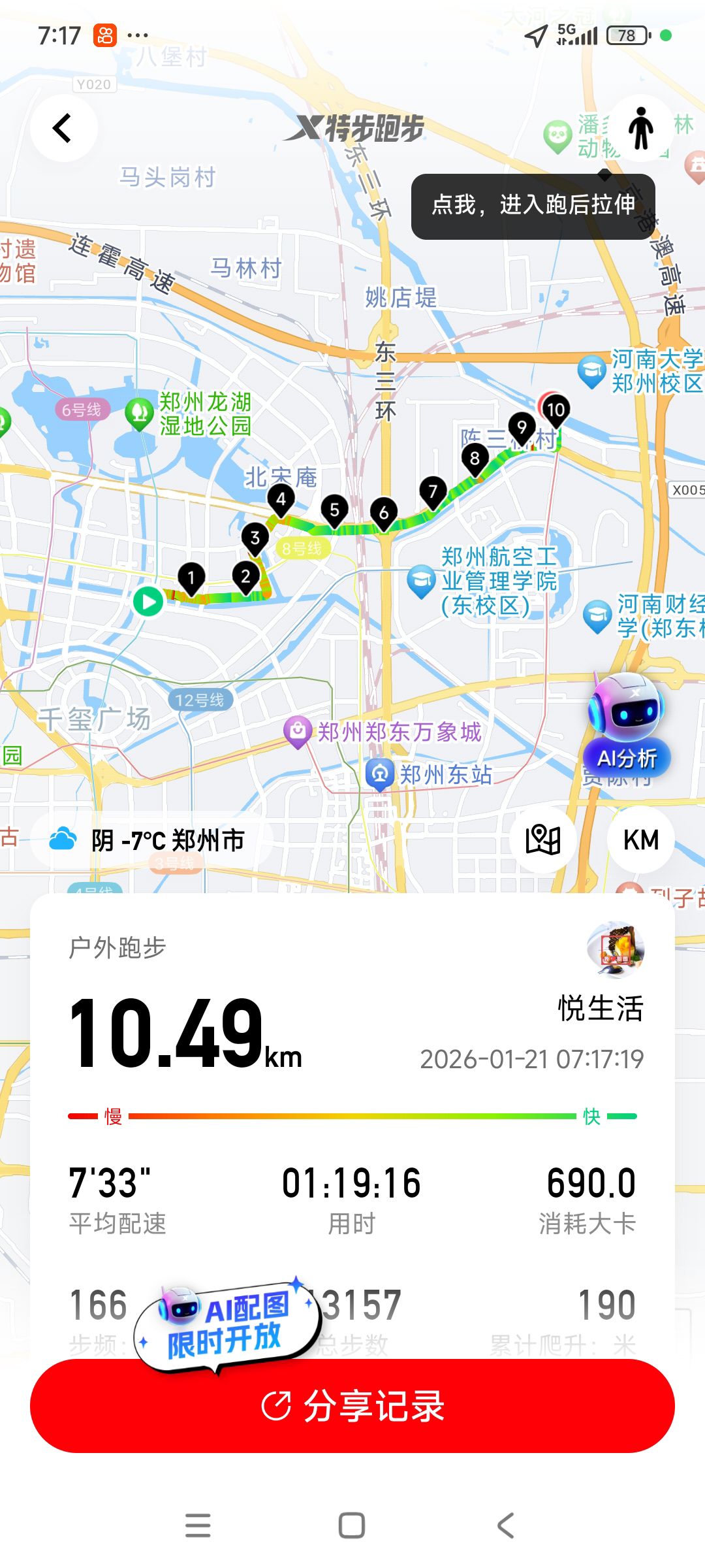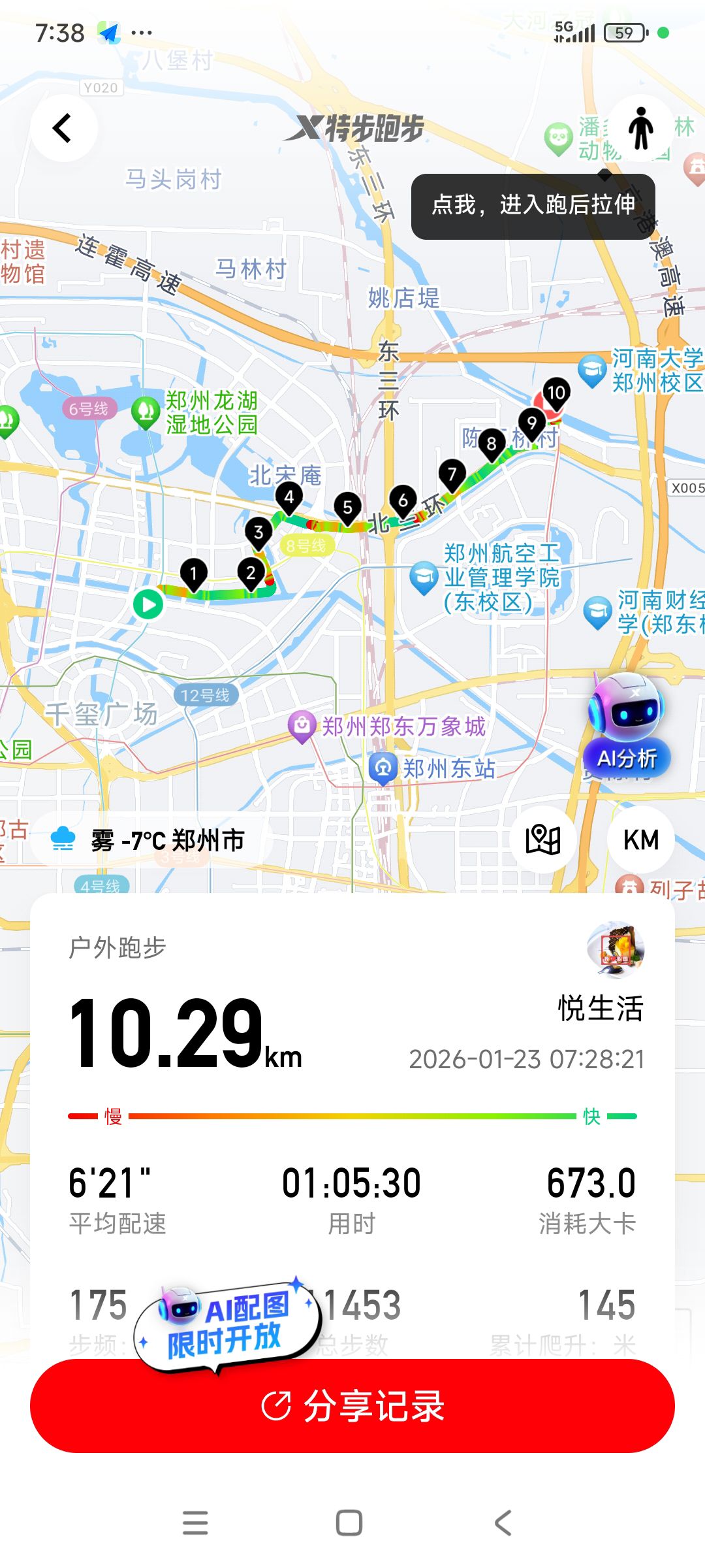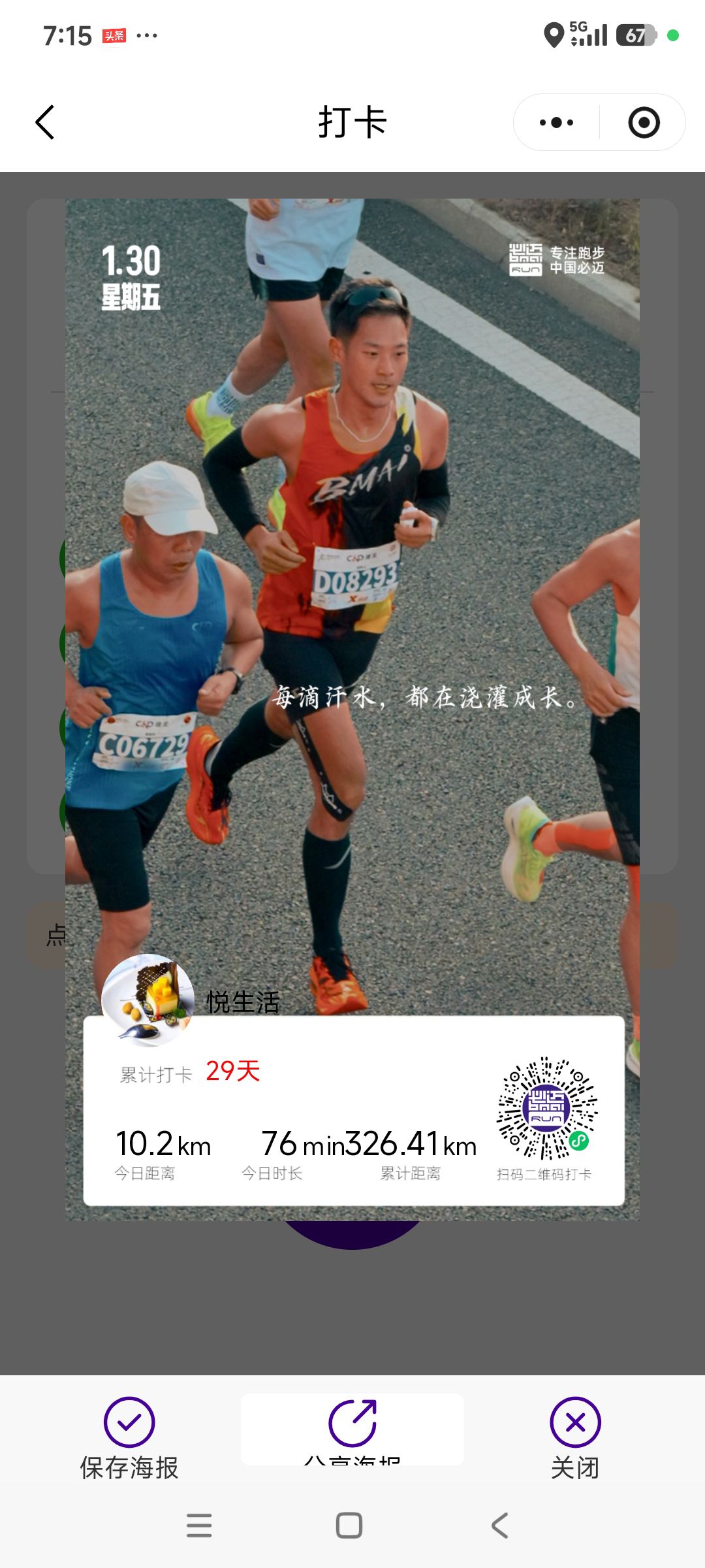 跑步打卡。 今天是2026年1月30日,农历十二月十二,星期五,早上跑步10.20公里。心态平和,与人友善,做个幸福的人,爱生活,悦生活。