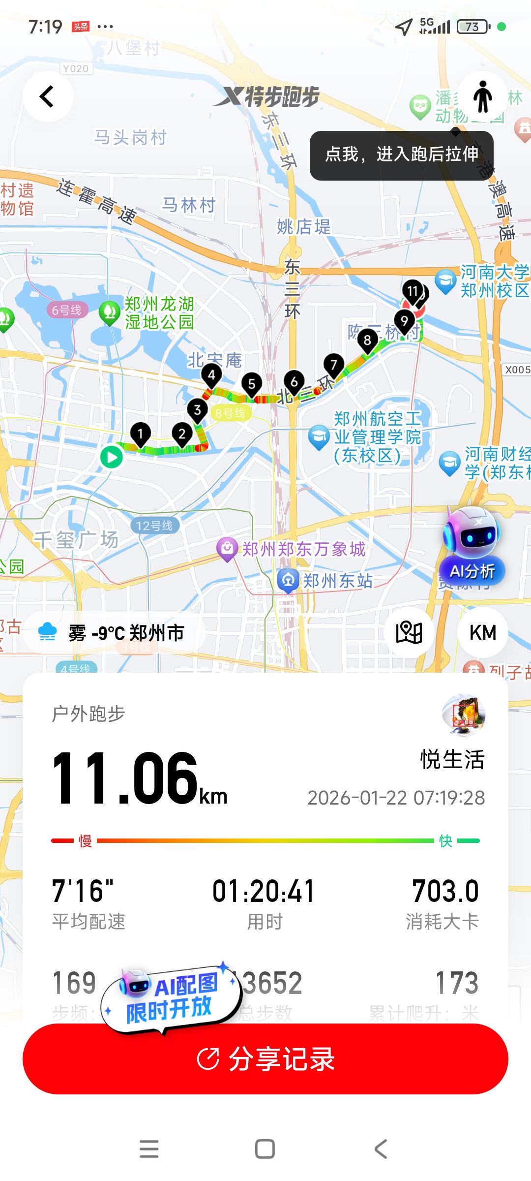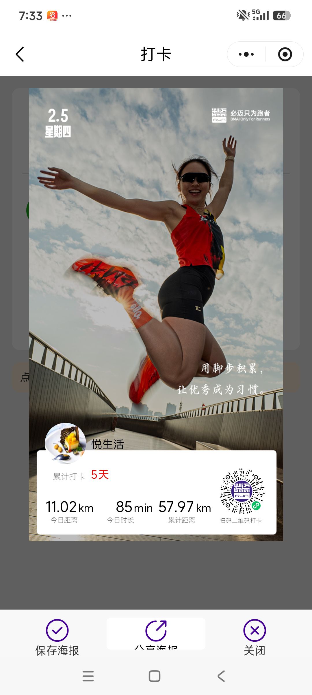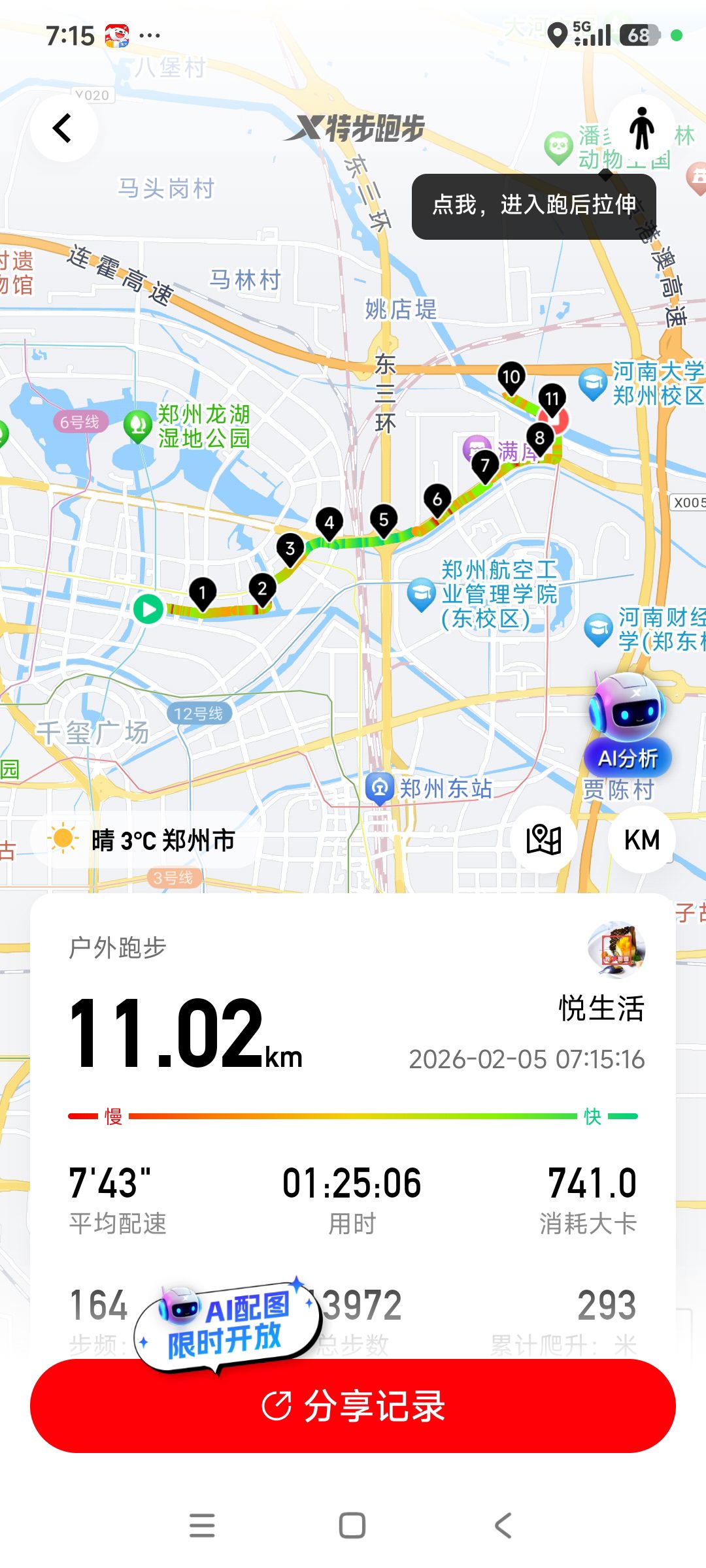 跑步打卡。 今天是2026年2月5日,农历十二月十八,星期四,早上跑步11.02公里。心态平和,与人友善,做个幸福的人,爱生活,悦生活。
