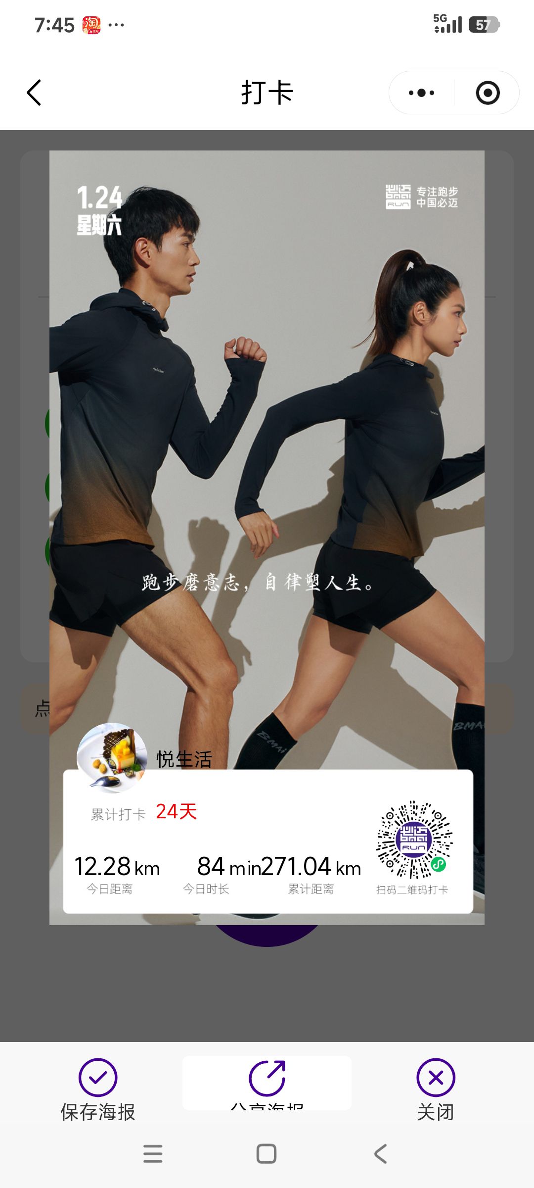 跑步打卡。 今天是2026年1月24日,农历十二月初六,星期六,早上跑步12.28公里。心态平和,与人友善,做个幸福的人,爱生活,悦生活
