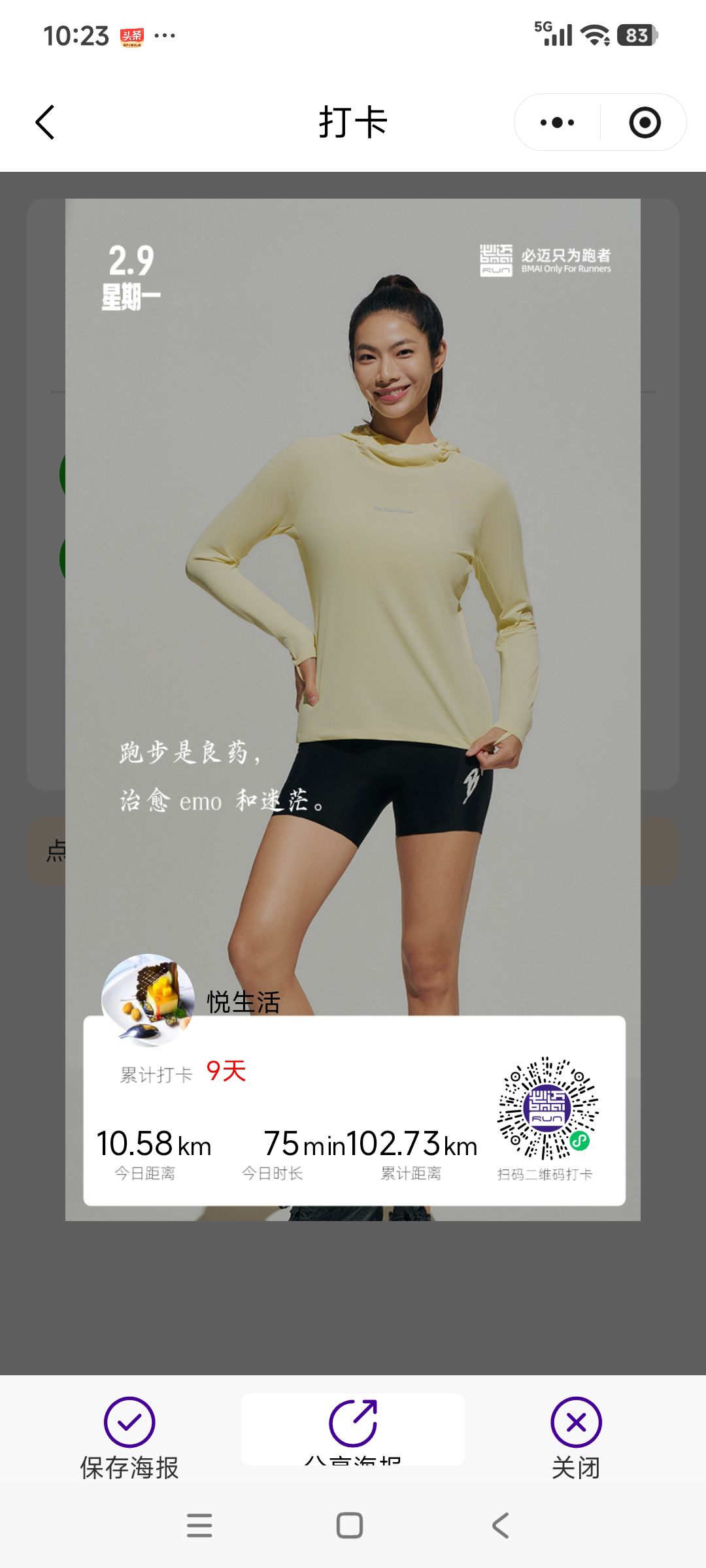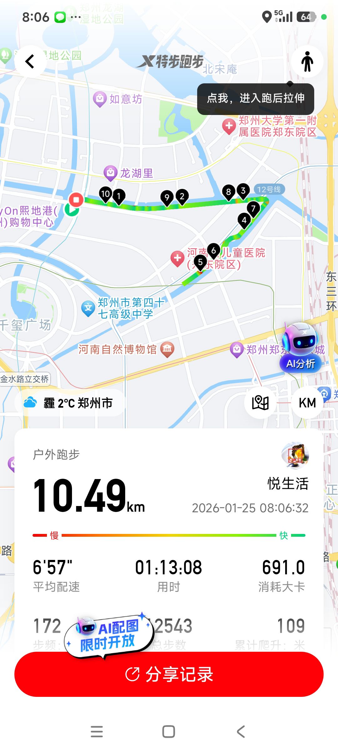 跑步打卡。 今天是2026年2月9日,农历十二月二十二,星期一,早上跑步10.58公里。心态平和,与人友善,做个幸福的人,爱生活,悦生活。