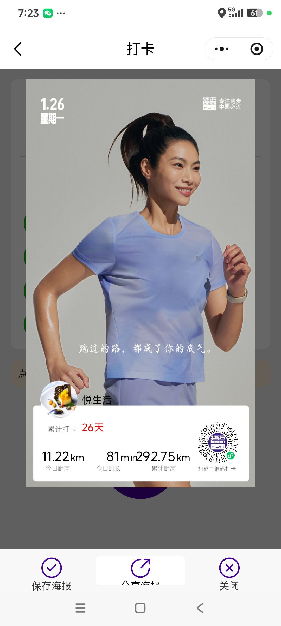 跑步打卡。 今天是2026年1月23日,农历十二月初五,星期五,早上跑步10.29公里。心态平和,与人友善,做个幸福的人,爱生活,悦生活。