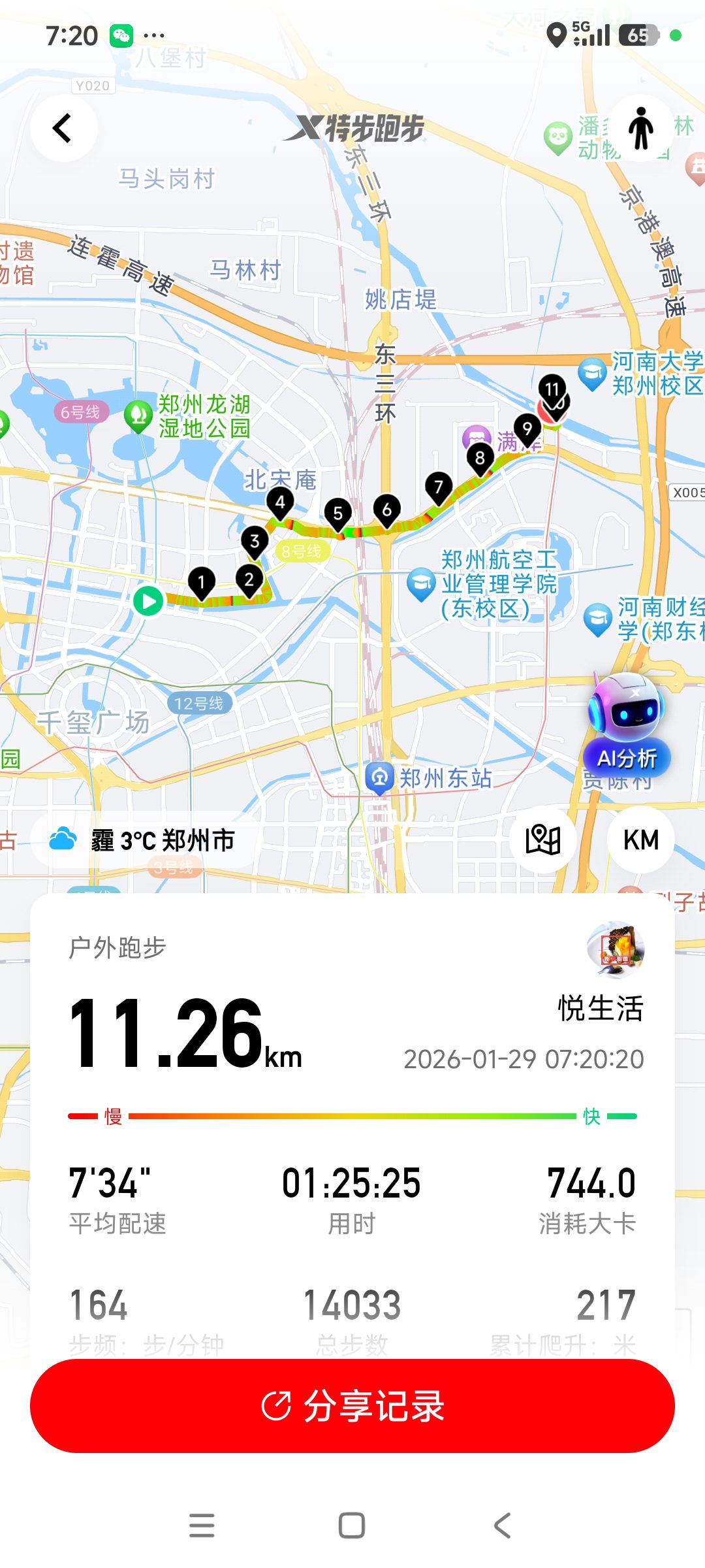 跑步打卡。 今天是2026年1月29日,农历十二月十一,星期四,早上跑步11.26公里。心态平和,与人友善,做个幸福的人,爱生活,悦生活。
