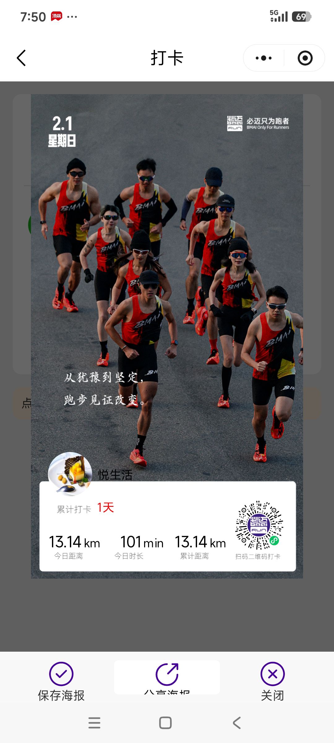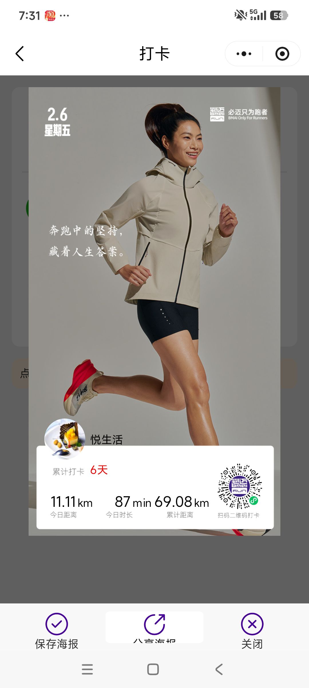 跑步打卡。 今天是2026年2月6日,农历十二月十九,星期五,早上跑步11.11公里。心态平和,与人友善,做个幸福的人,爱生活,悦生活。