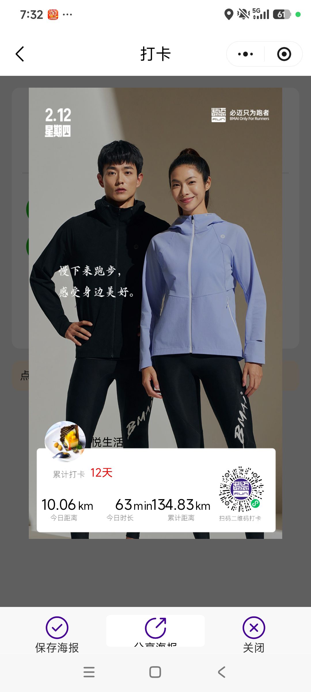 跑步打卡。 今天是2026年2月12日,农历十二月二十五,星期四,早上跑步10.06公里。心态平和,与人友善,做个幸福的人,爱生活,悦生活。
