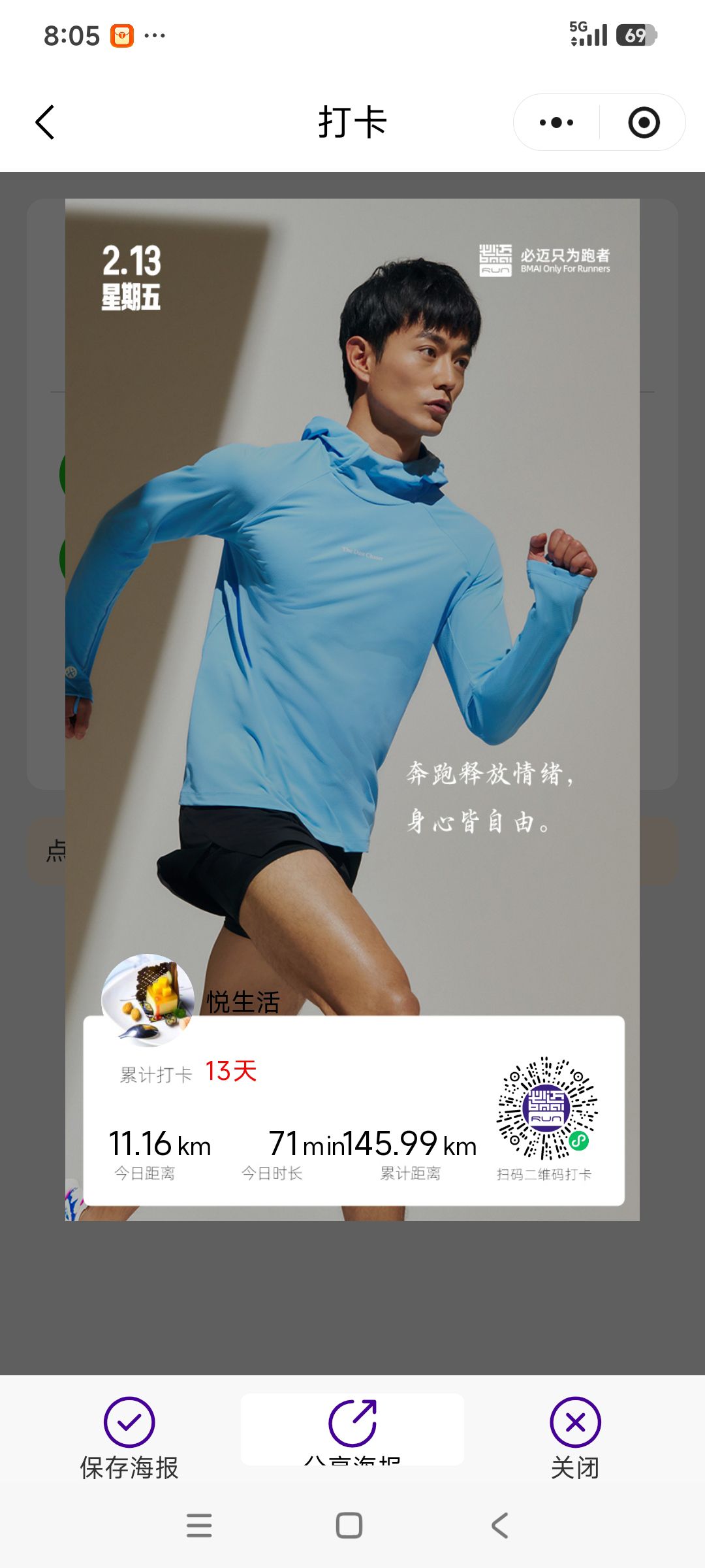 跑步打卡。 今天是2026年2月13日,农历十二月二十六,星期五,早上跑步11.16公里。心态平和,与人友善,做个幸福的人,爱生活,悦生活。