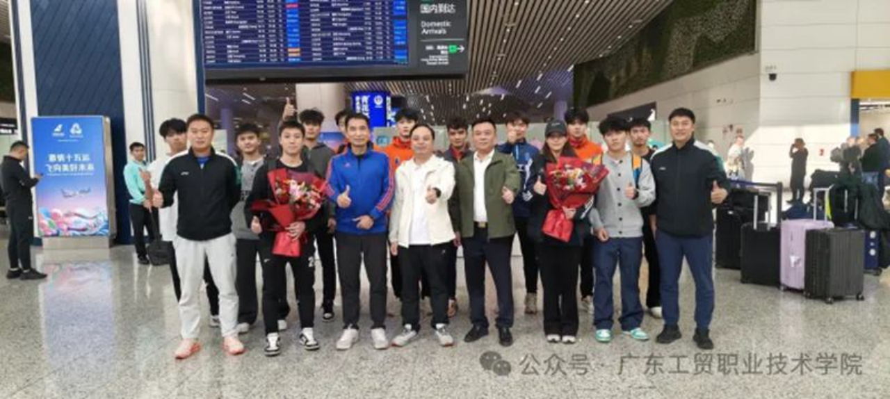 这份沉甸甸的荣誉,离不开学校领导的悉心关怀与鼎力支持,是学校重视体育教育、推动素质全面发展的生动实践;凝聚着指导老师的全心投入与不懈付出,他们结合五人制足球的项目特点科学制定训练计划,打磨战术细节,全程陪伴队员成长;更彰显了参赛学子的顽强意志与奋进担当,他们在赛场上不畏强手、奋勇争先,将青春活力与体育精神展现得淋漓尽致。11月29日下午,受党委书记何汉武委托,党委副书记揭英荣前往白云国际机场迎接我校冠军队凯旋,以献花之礼,表达学校党委的深切慰问与诚挚祝贺。