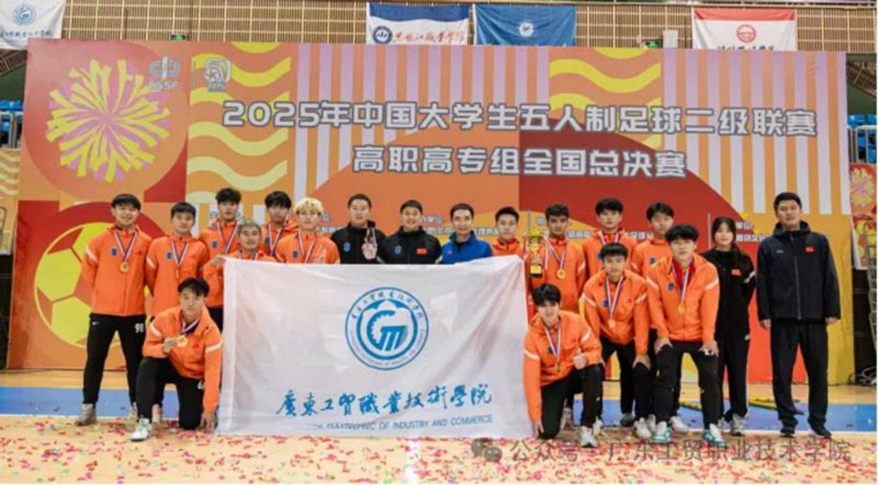 11月19日,2025年中国大学生五人制足球联赛二级联赛全国总决赛在四川宜宾落下帷幕,本次赛事由中国学生体育联合会主办,共汇聚32支参赛队伍、450名参赛选手,高手云集、竞争激烈。广东工贸职业技术学院足球队代表广东省出征,历经循环赛的激烈角逐与淘汰赛的严峻考验,在决赛中以11:1的优异成绩完胜黑龙江职业技术学院代表队,成功登顶全国总冠军,不仅刷新广东省高职院校在该项目上的历史最佳纪录,更以精彩表现诠释了五人制足球这一校园适配型运动的独特魅力。