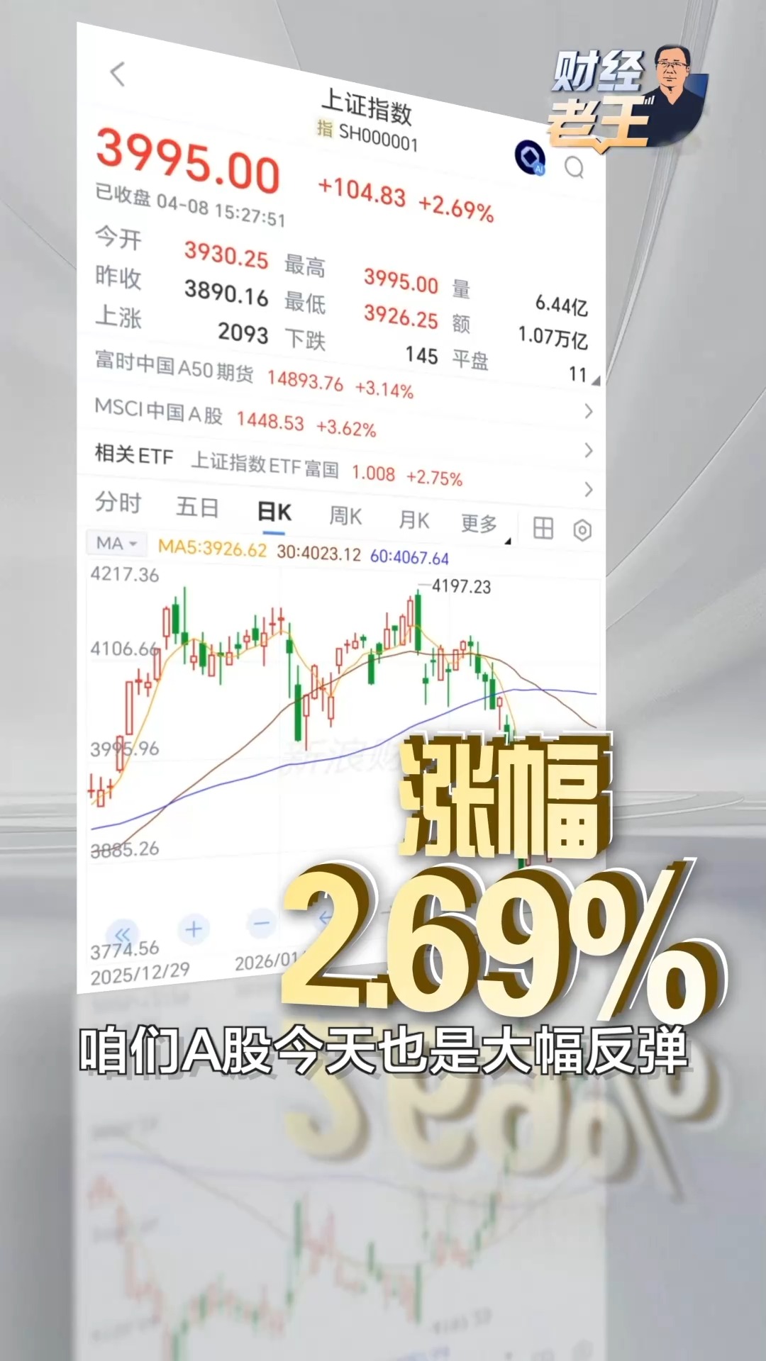 A股今天也大幅反弹,到收盘,上证指数涨幅2.69%,深证成指涨幅4.79%,贵金属板块集体大涨。