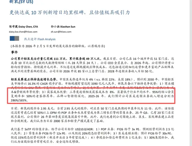 其一,门店规模方面,截至2025年底,新氧青春诊所已开设49家轻医美门店,门店数量位居全国轻医美连锁品牌第一位。