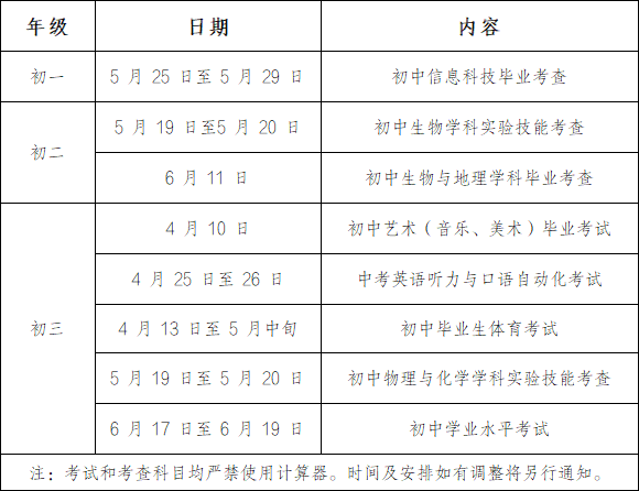 成绩分为“合格”与“不合格”两类,生物、地理考查用时均为 60 分钟,信息科技考查用时 45分钟,其他考查科目根据学科要求确定测试用时。