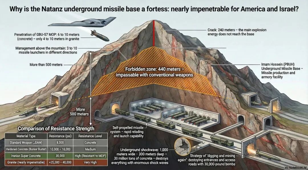 我想试着用几张解剖图显示伊朗军队的秘密地下导弹网络,现在这些网络正在承受着美国和以色列军队的强烈打击,它们都被修建位于伊朗高原的地下500米处,隧道纵横,形成了一个或者是全世界最大的“导弹地铁系统”。