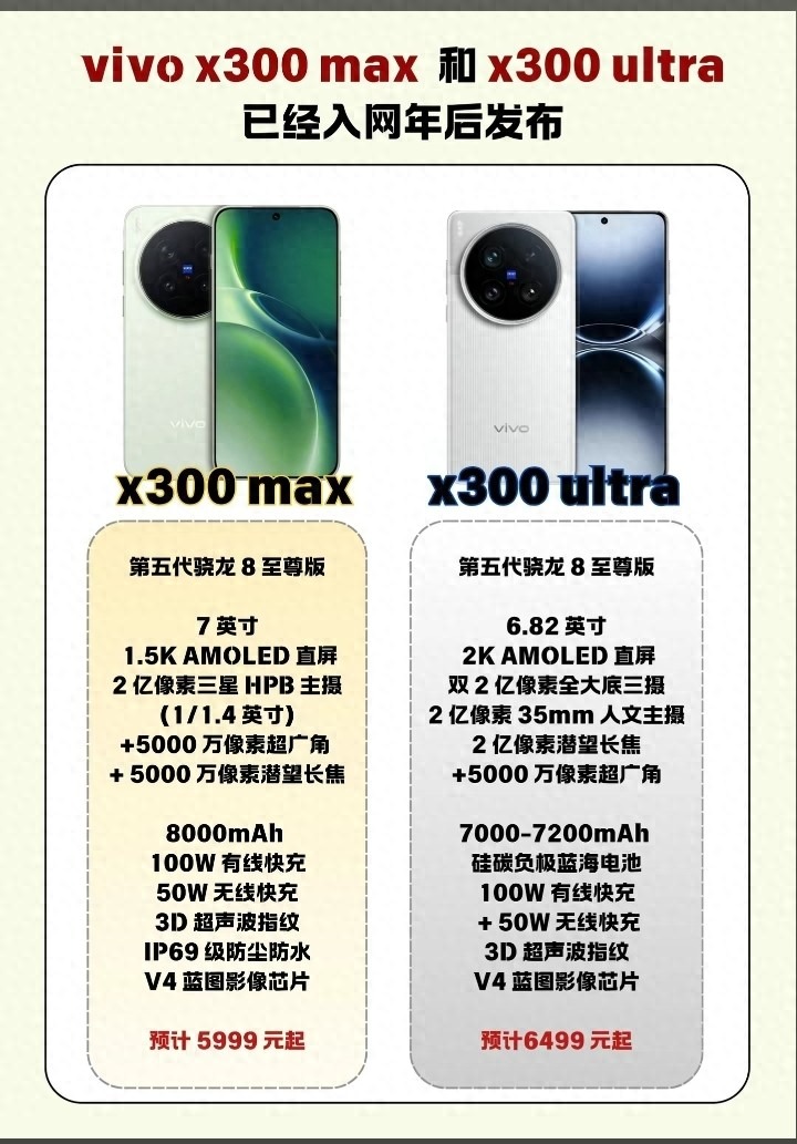 该机将内置超7000mAh电池,支持100W有线+50W无线快充,支持IP68等,从爆料看,整机无明显短板,是影像、续航、性能拉满的全能旗舰。此外,据爆料,官方还将为该机配备蔡司2亿潜望长焦物理焦段为85mm搭配上全新的外挂增距镜,将刷新演唱会神器的表现,在演唱会、体育赛事或旅拍观景时轻松捕捉远处的画面细节。另外,该机还将支持第三代3D超声波指纹,顶配版支持卫星通信功能等。据称该机将于今年3月全球首发,主打年度影像旗舰。