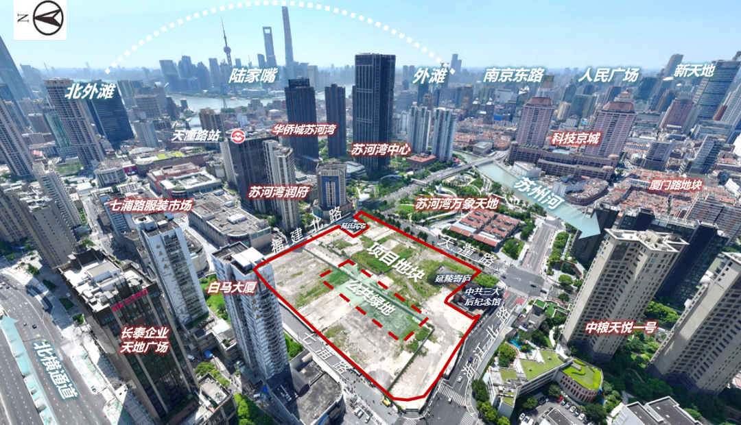 从上海土地市场官网挂牌公示来看,静安苏河湾项目地处内环内,紧邻外滩、北外滩功能核心,南邻苏州河(直线距离约200米),南侧与黄浦区一河之隔,距离外滩约1km、人民广场约1.5km,区位极为优越。