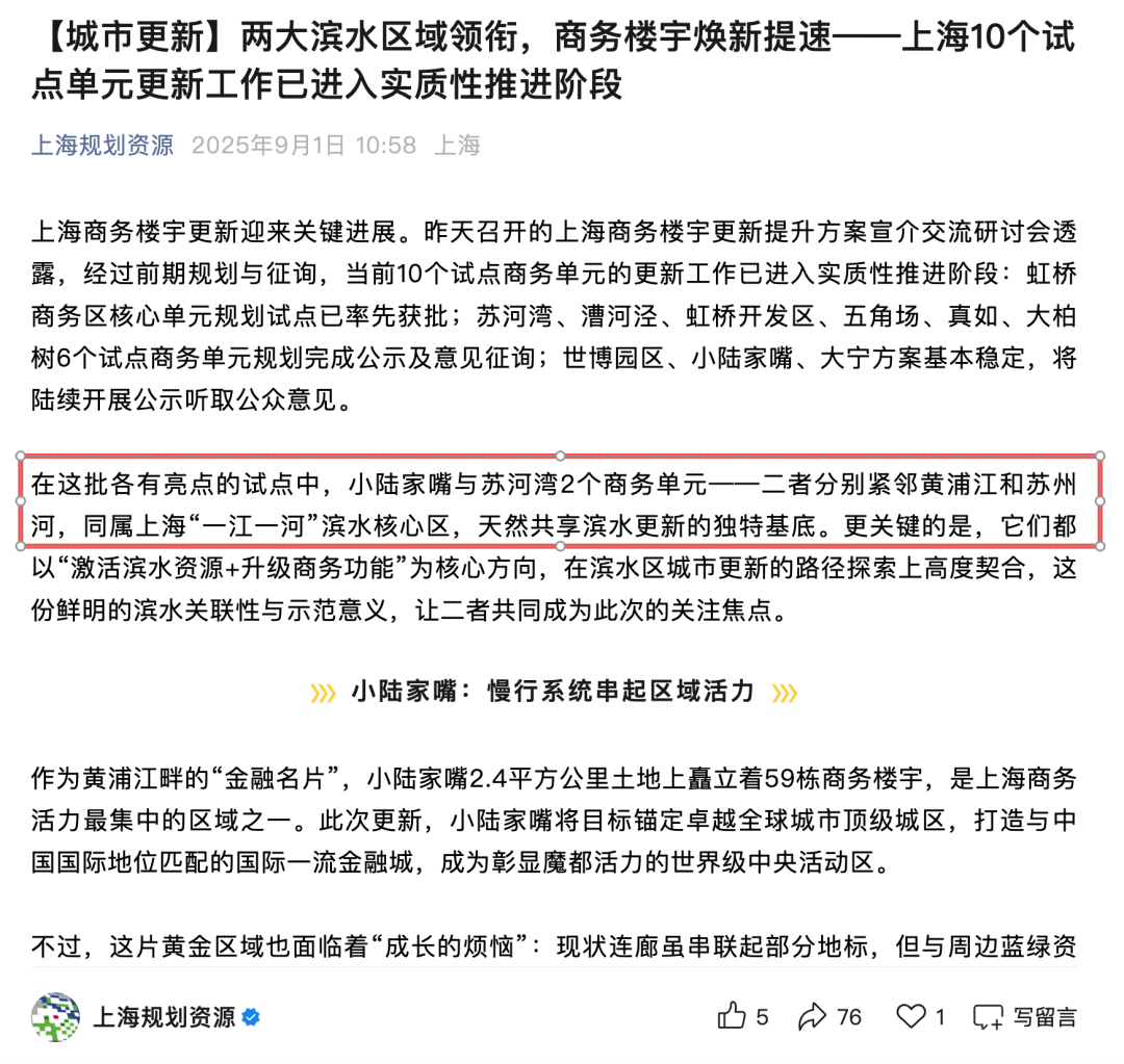 2025年9月1日,上海市规划和自然资源局发文称上海10个试点单元更新工作已进入实质性推进阶段。