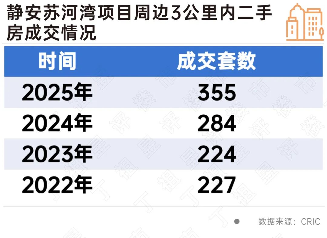 从该区域近几年二手房情况来看,2024年、2025年已连续两年成交套数上升,这说明,苏河湾核心片区存在着较为稳定的置换需求,同时目前拥有一线景观的标杆项目距今已近10年,因此,市场需要一个更有突破性的项目来引领整个区域的市场发展。