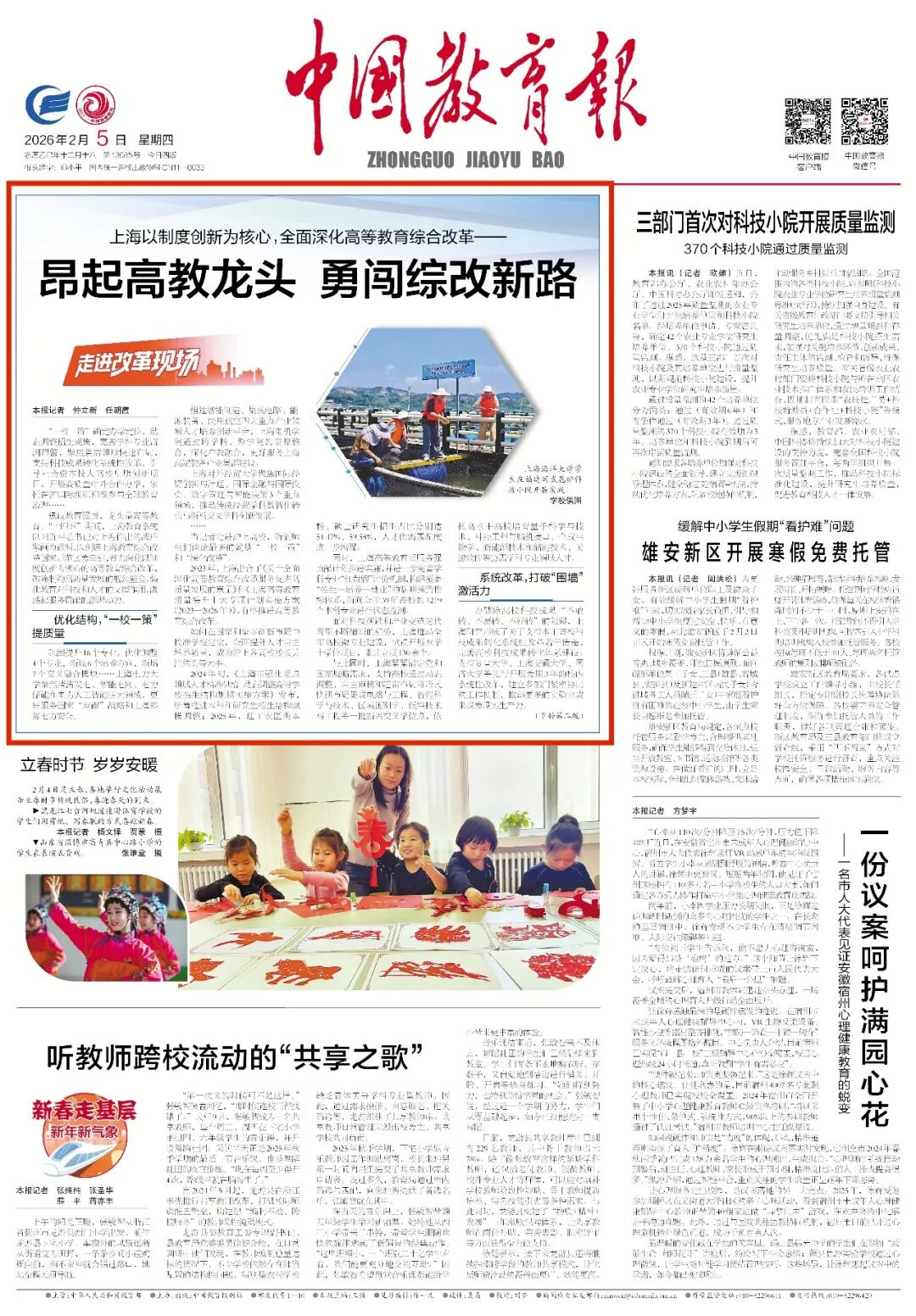 本文来源|《中国教育报》2026年2月5日01版,原标题《上海以制度创新为核心,全面深化高等教育综合改革——昂起高教龙头 勇闯综改新路》