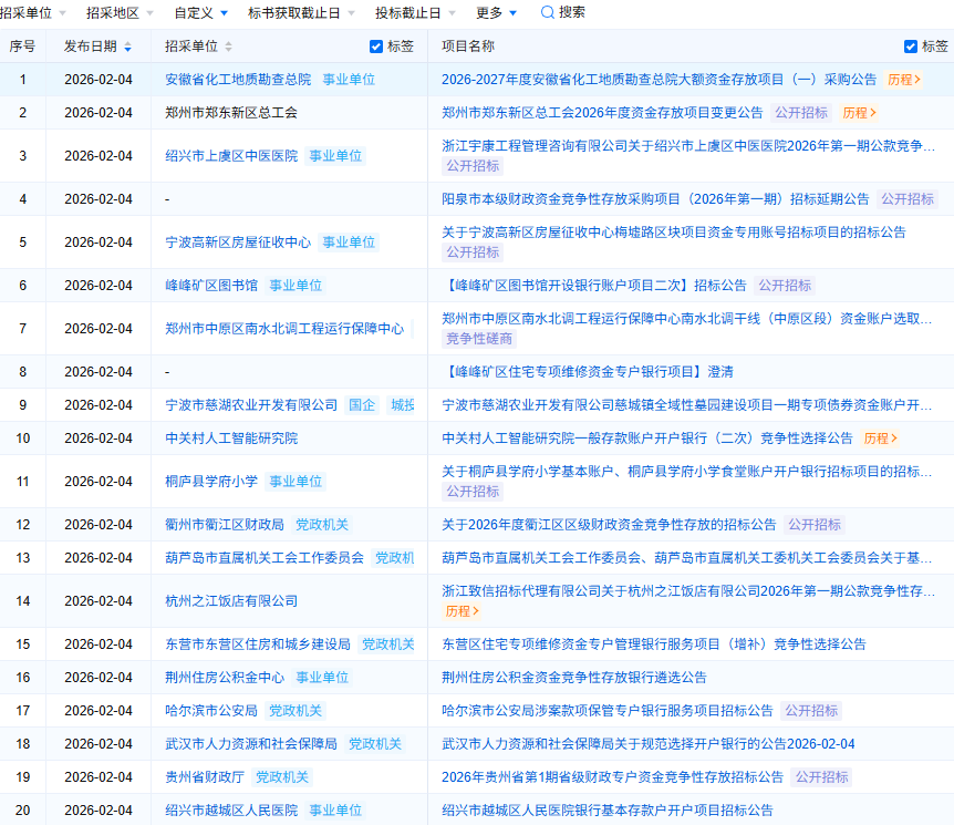 银行服务招标