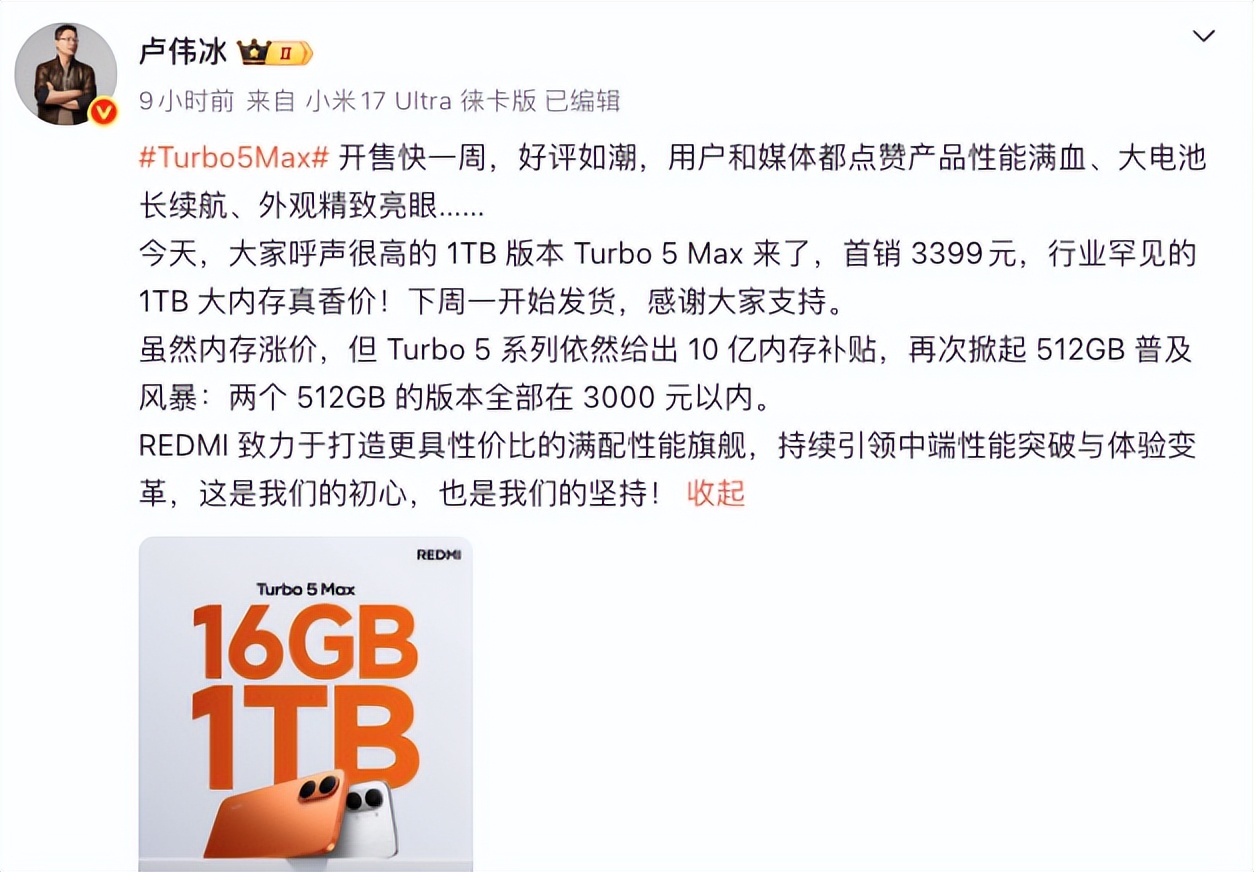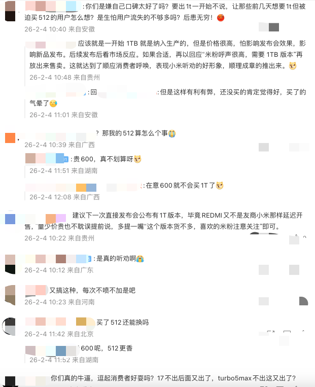 小米首销没有计划,但因为大家对这个版本 “ 呼声很高 ” ,所以后续才加推一个行业罕见的 1TB 大内存 版本。