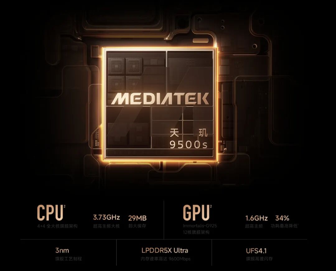 再搭配 LPDDR5X Ultra + UFS4.1 存储规格,外加旗舰同款 3D 冰封循环冷泵散热;