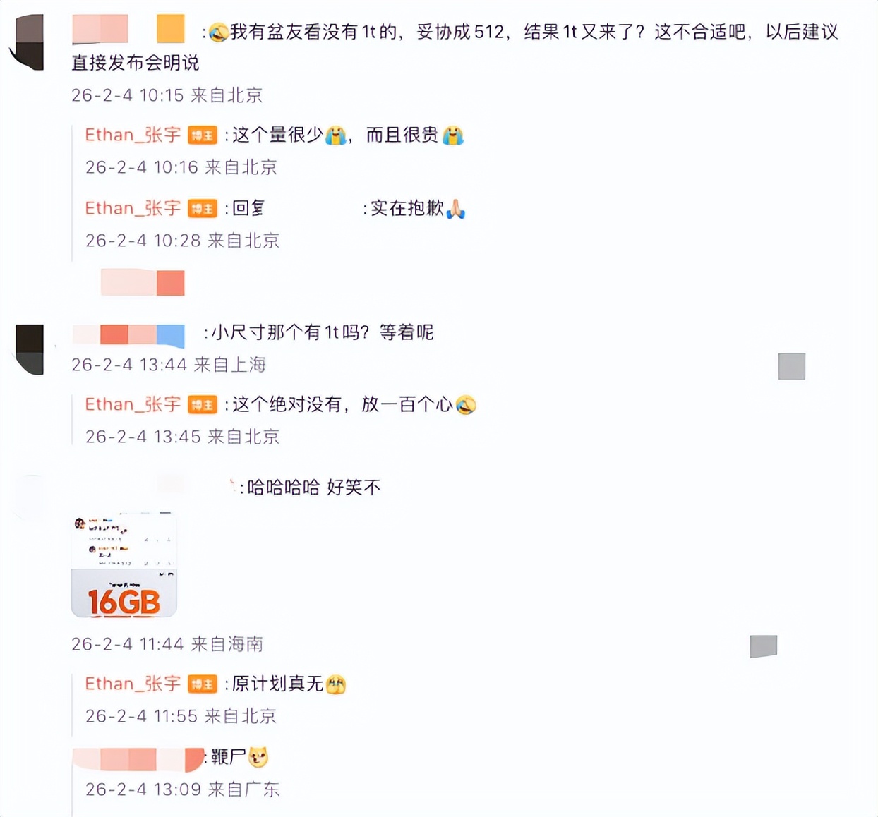 “ 我有朋友看没有 1TB 的,妥协成 512GB ,结果 1TB 又来了?这不合适吧,以后建议直接发布会明说。 ”