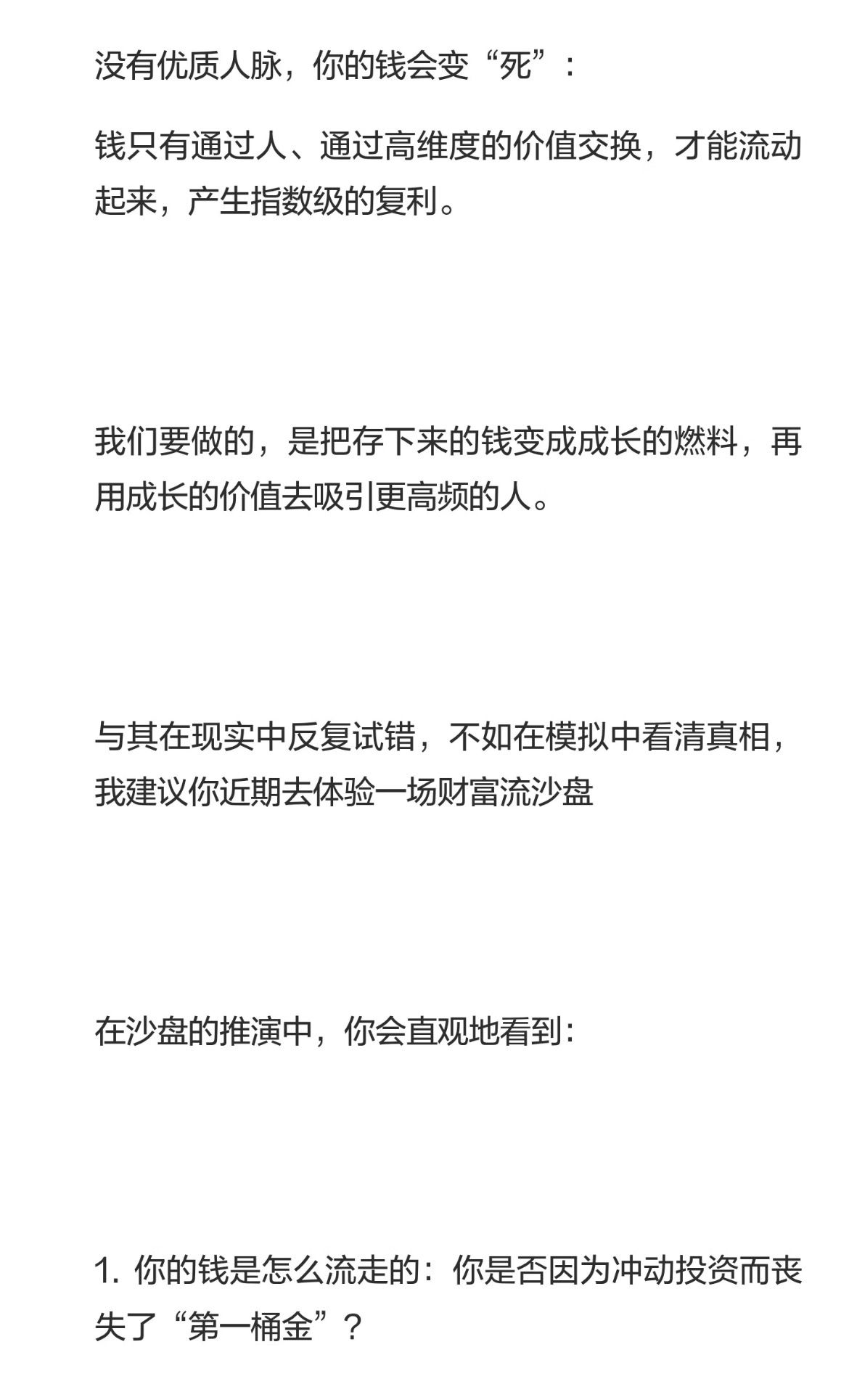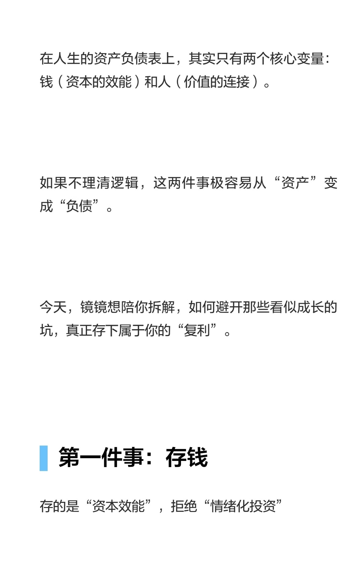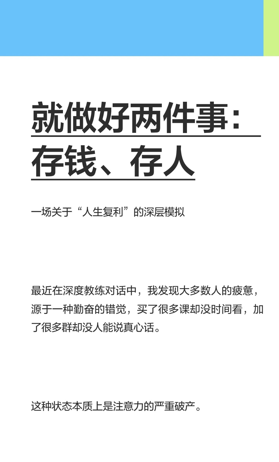就做好两件事,存钱、存人