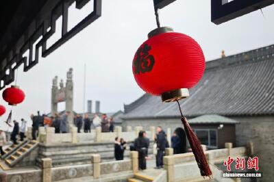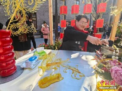 2月7日,书法家在圆明园海棠书院现场书写福字和春联送给游客。
