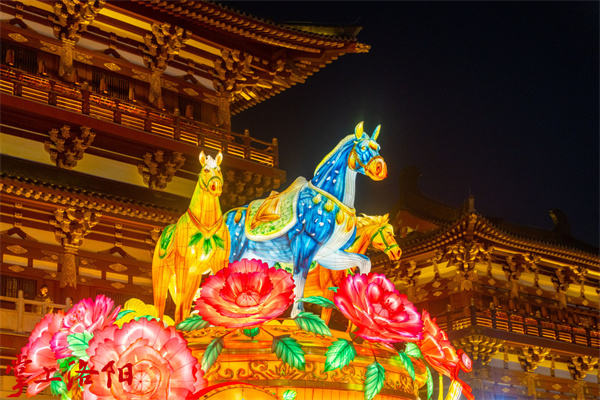 最具特色的“文博”灯组团,巧妙融入唐三彩、牵手女俑、“招财猫”等洛阳顶流文物元素,让沉睡的文物“走”出博物馆、“活”在灯影里,打造出一座可赏、可玩、可品读的“光影博物馆”。