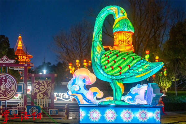 今年“神都上元灯会”九洲池会场,将持续至3月4日(正月十六)。景区以“牡丹栖凤·上元聆香、天马驮文·洛水寻源、凤阙临朝·万国衣冠、九陌踏歌·烟火如织”四大主题场景为脉络,深度融合隋唐文物元素与现代光影技术,打造“一步一景、一灯一史”的观赏体验,让传统文化在新春佳节焕发新生。