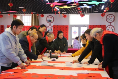 舞台另一侧,书法家、美术家凝神挥毫,一副副寓意吉祥的春联、一个个遒劲有力的“福”字新鲜出炉。广场两旁,非遗剪纸技艺代表性传承人王军的剪纸作品、刻纸艺术家司华的刻纸作品静静陈列,万千气象在剪刀与刻刀下绽放,让村民近距离感受传统民俗的独特魅力。