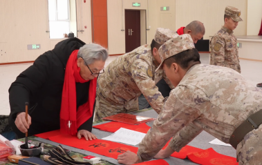 近日,拜城当地书法家走进驻拜部队,现场为官兵书写春联与“福”字,送上新春的美好祝福。