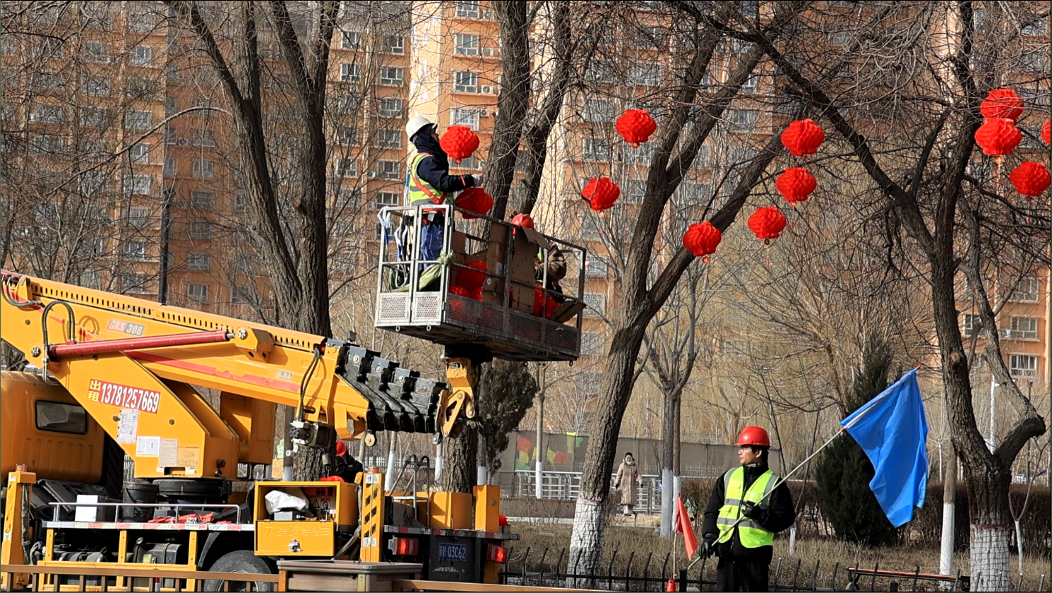 新疆华盛利川工程建设有限公司职工王东泽说:“我们平均每天有50个人,分四组在挂灯笼和组装。对主干道、十字路口的树木挂烟花灯和星星灯,还要缠绕灯带进行装饰,计划在2月13日完成施工。”