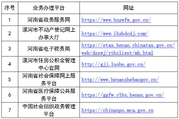 3.手机端:办事群众可通过下载注册“豫事办”APP、支付宝搜索“豫事办”小程序或部门微信公众号、APP(“漯河市不动产登记”微信公众号、漯e登微信小程序、“河南医保”微信小程序、河南社保app)等渠道办理业务。