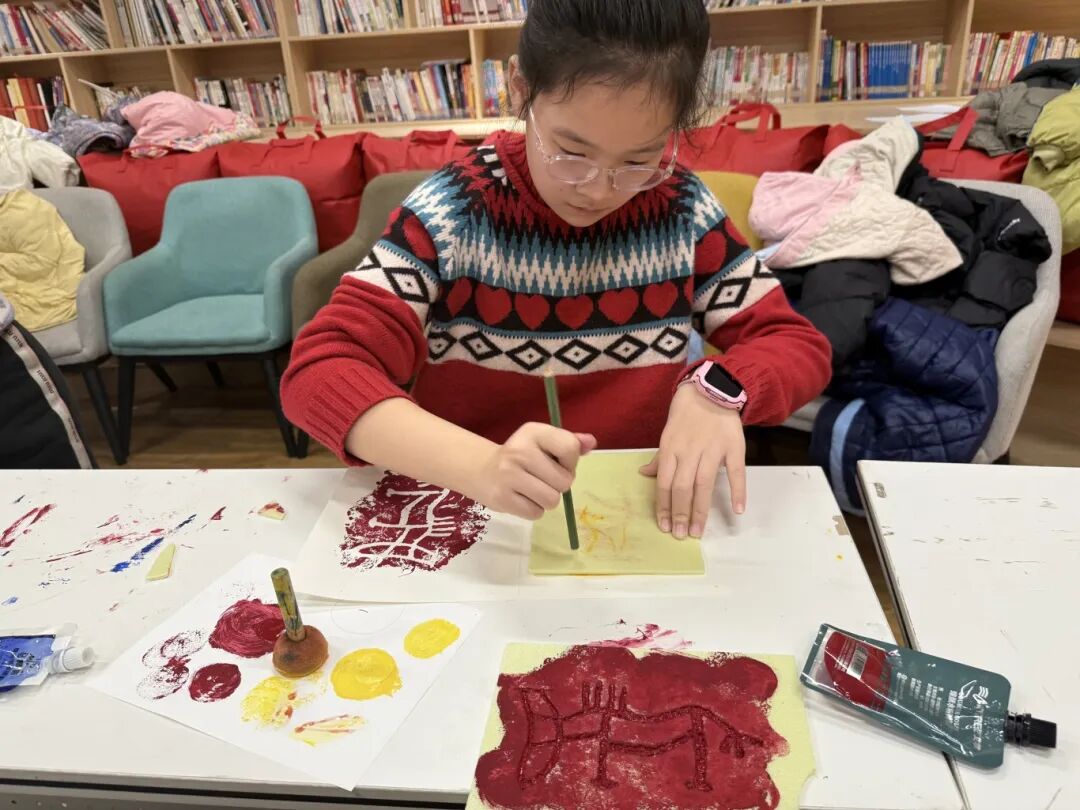 活动中,孩子们神情专注,在泡沫板上一笔一划地勾勒,有的刻出了“快乐”“开心”的字样,寄托着对新年的美好祝愿;有的则用线条勾勒出充满童趣的马年图案。老师在一旁耐心引导,帮助孩子们掌握版画的基础方法,感受传统艺术的独特魅力。(符蒙蒙 姜美琪 文/图)