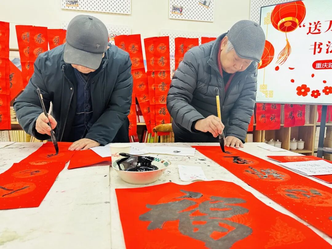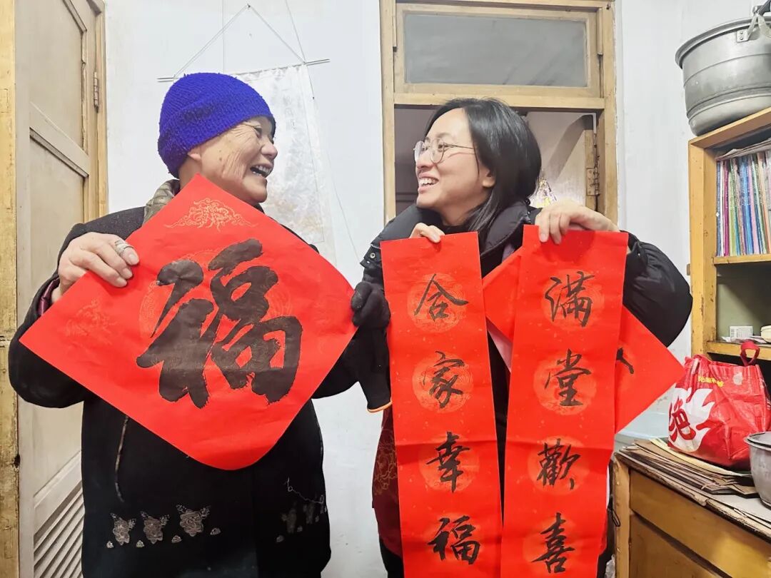为了让独居、空巢老人等也能感受到这份新春暖意,志愿者们组成“送福小分队”,将现场写好的春联、福字挨家挨户送到他们手中。(薛文静 文/图)