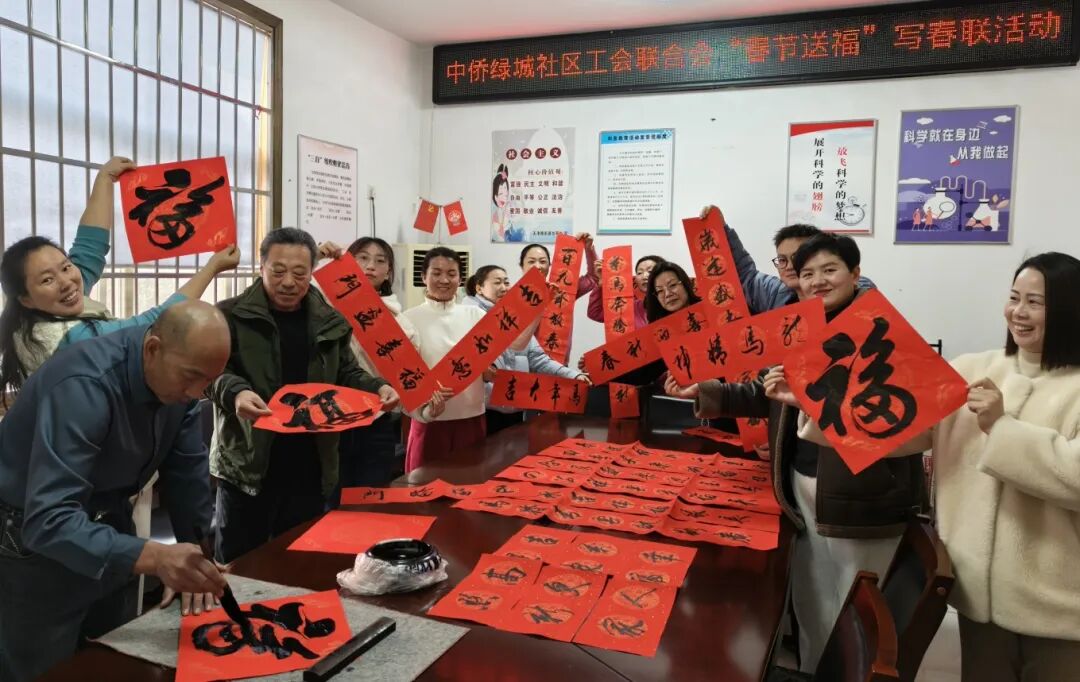 近日,中侨绿城社区开展“春节送福啦”写春联送祝福活动。