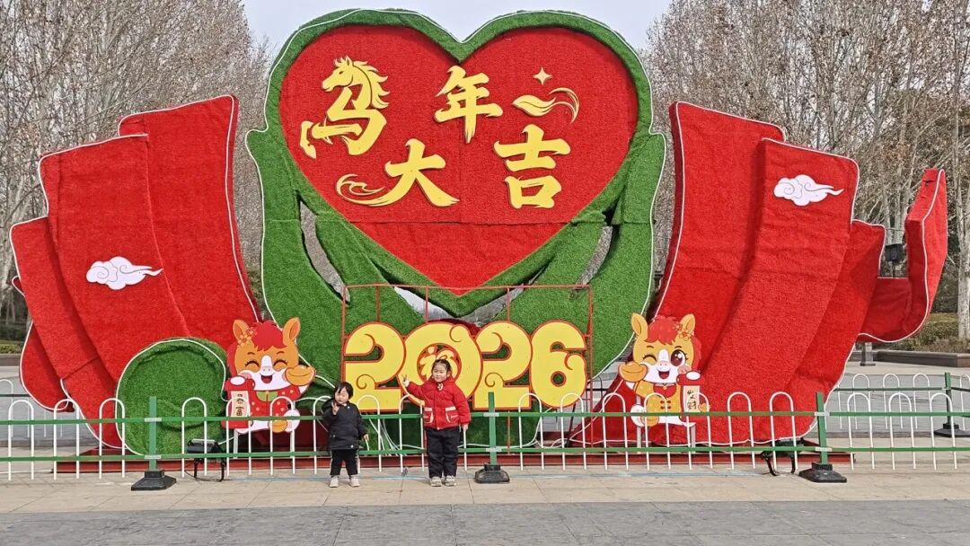 汉文化广场的绿雕则尽显温情,心形轮廓包裹着 “马年大吉”的美好期许,萌趣的生肖福娃环绕左右,红与绿的经典配色交织,既透着传统年味,又藏着满满的暖意。这些装置巧妙融合马年元素,为市民营造出浓厚的节日氛围,成为串联城市景观的亮丽风景线。