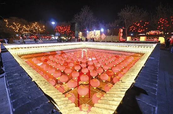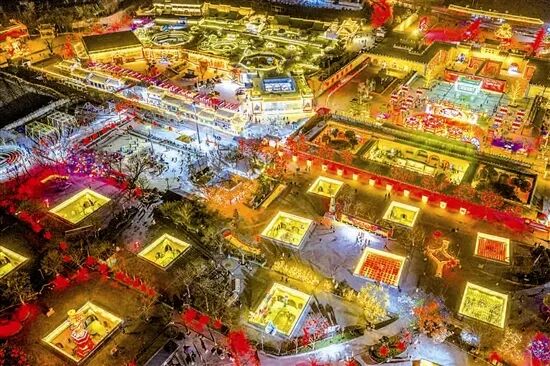 流光溢彩的花灯将地坑院映照得绚烂夺目。本报记者 孙猛 摄