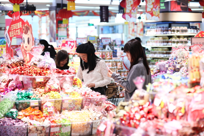 2月6日,市民在库车市亿家汇好超市选购年货。通讯员 吐尔松·托胡提 摄
