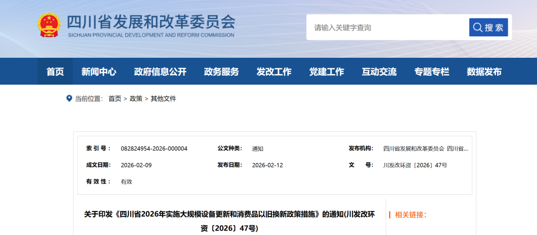 《四川省2026年实施大规模设备更新