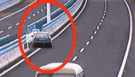 ▲男子驾车在高速公路上行驶时,“打了个盹儿”导致车辆撞上施工区放置的锥桶