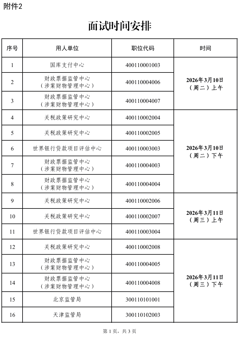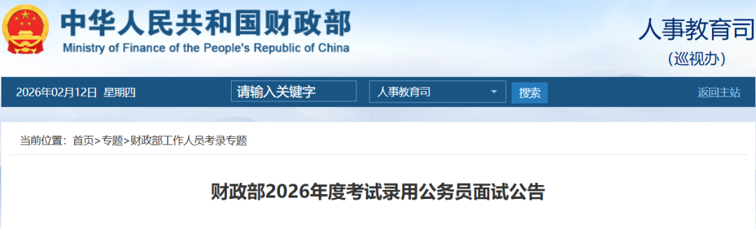 根据公务员法和公务员录用有关规定,现就财政部2026年度考试录用公务员面试有关事宜通知如下: