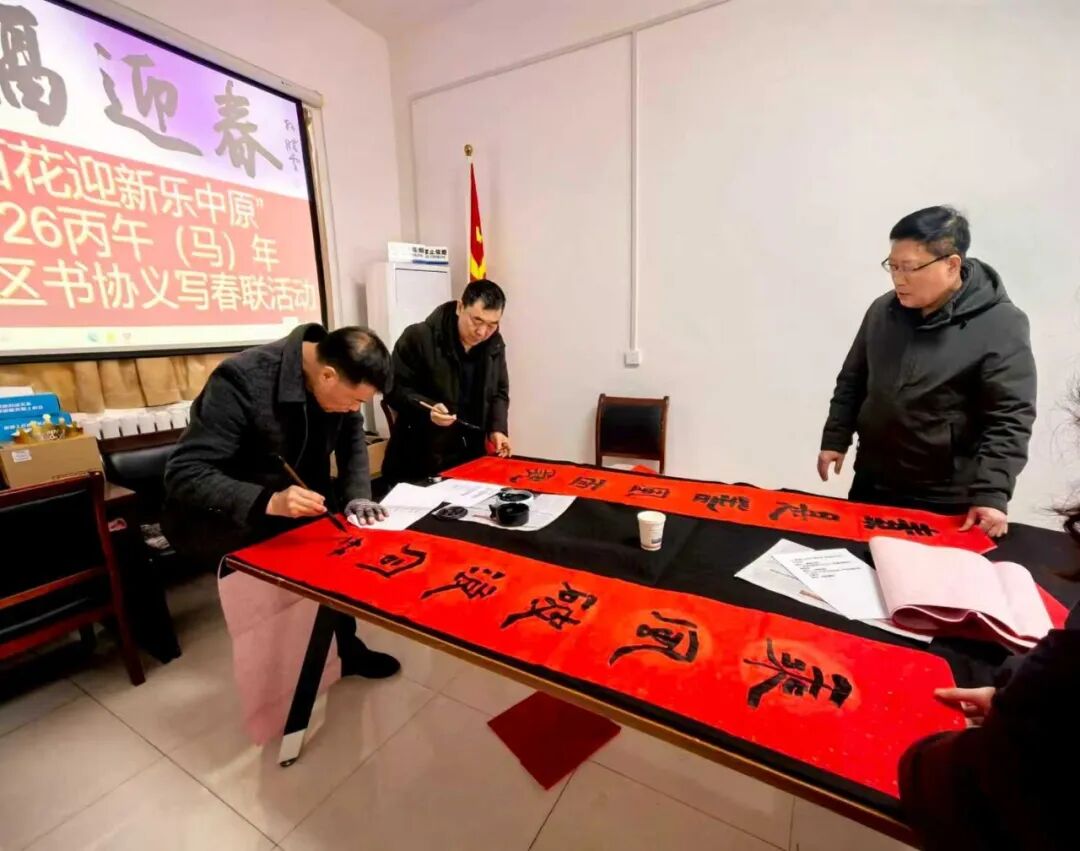 活动特别邀请了中书协会员、区书协主席郝少文,省书协会员、区书协副主席关国利、刘团,区书协副主席兼秘书长关勇友等书法名家现场创作。活动现场翰墨飘香、暖意融融,书法家们满怀热情,铺纸、蘸墨、运笔一气呵成,一撇一捺间尽显笔墨功底。一副幅承载吉祥寓意、贴合企业特色的定制春联,一个个笔力遒劲、饱含美好期许的“福”字跃然纸上,现场洋溢着喜庆祥和的节日氛围。