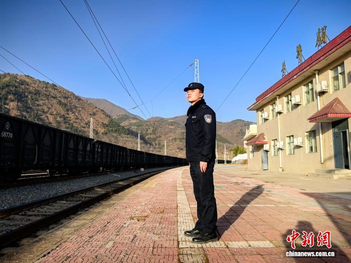 图为青年民警宋明洋目送途经列车安全通过。王小东 摄