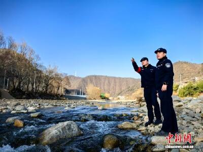图为青年民警倪泽宇、宋明洋在嘉陵江畔远眺铁道线路治安情况。王小东 摄
